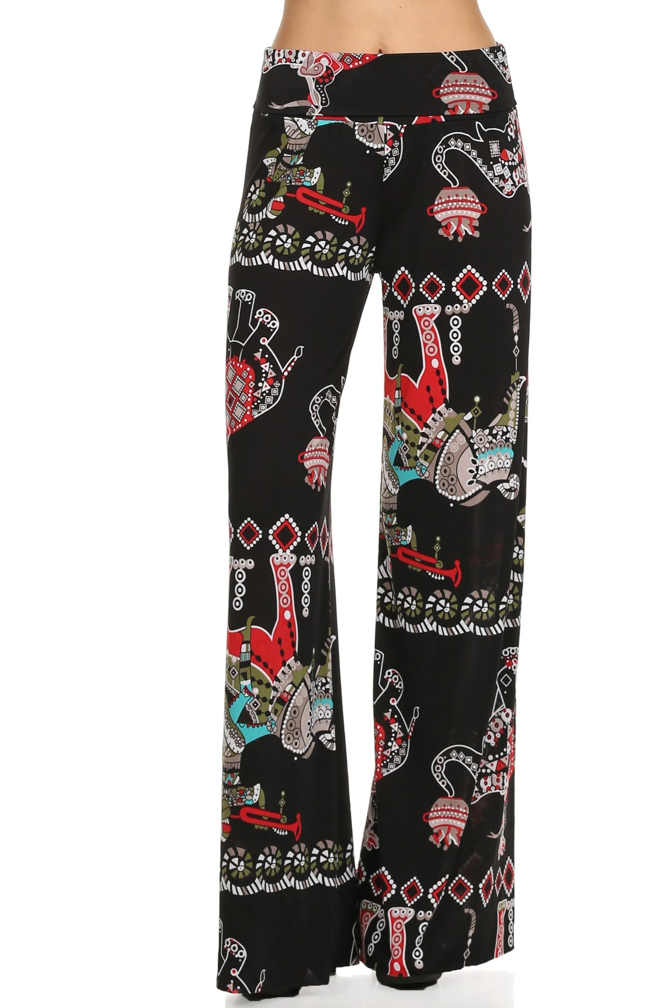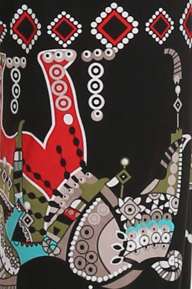 Say “Open Sesame” to good times in these funky batik printed palazzo pants complete with adorable elephants. High rise with fold over waistband option. Lightweight polyester blend keeps you cool whether you’re in the sun or shade. Pair with sky-high wedges for the ultimate adventure.Â