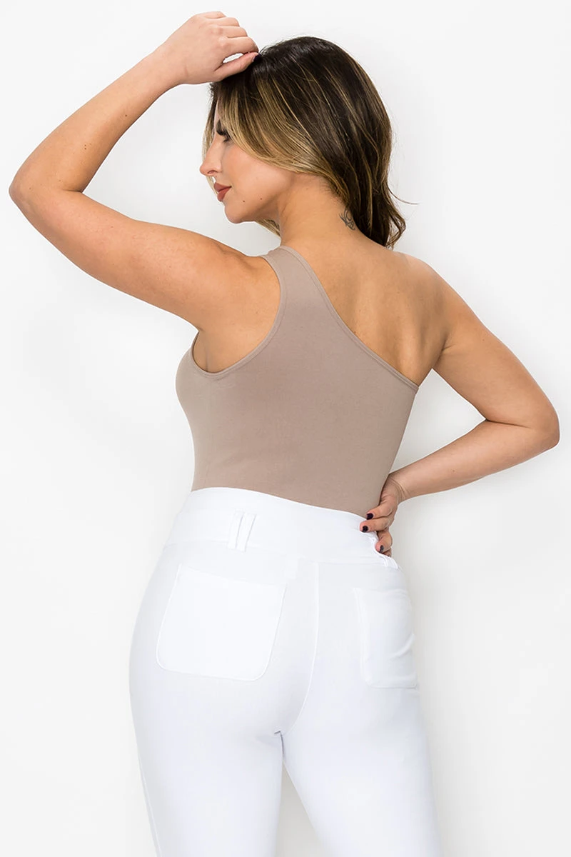 Get a sleek, polished look with this seamless one shoulder bodysuit! Featuring a one shoulder design, a thong cut bottom, and is constructed with seamless super stretchy fabric that is comfortable for an all-day wear.