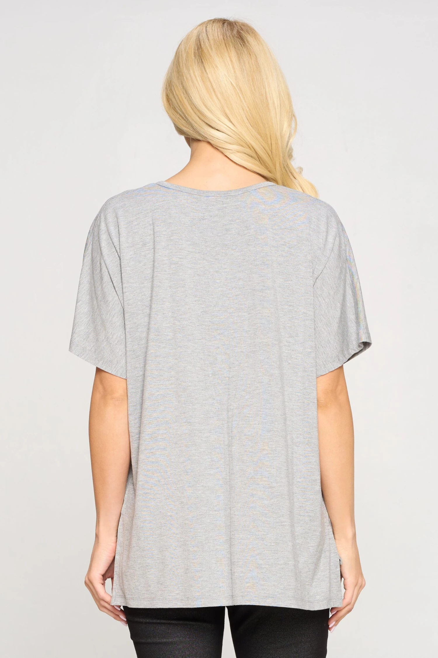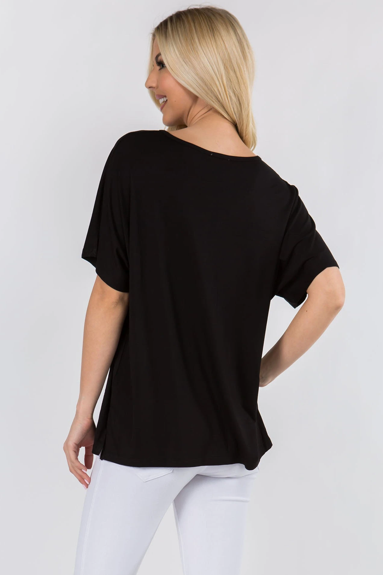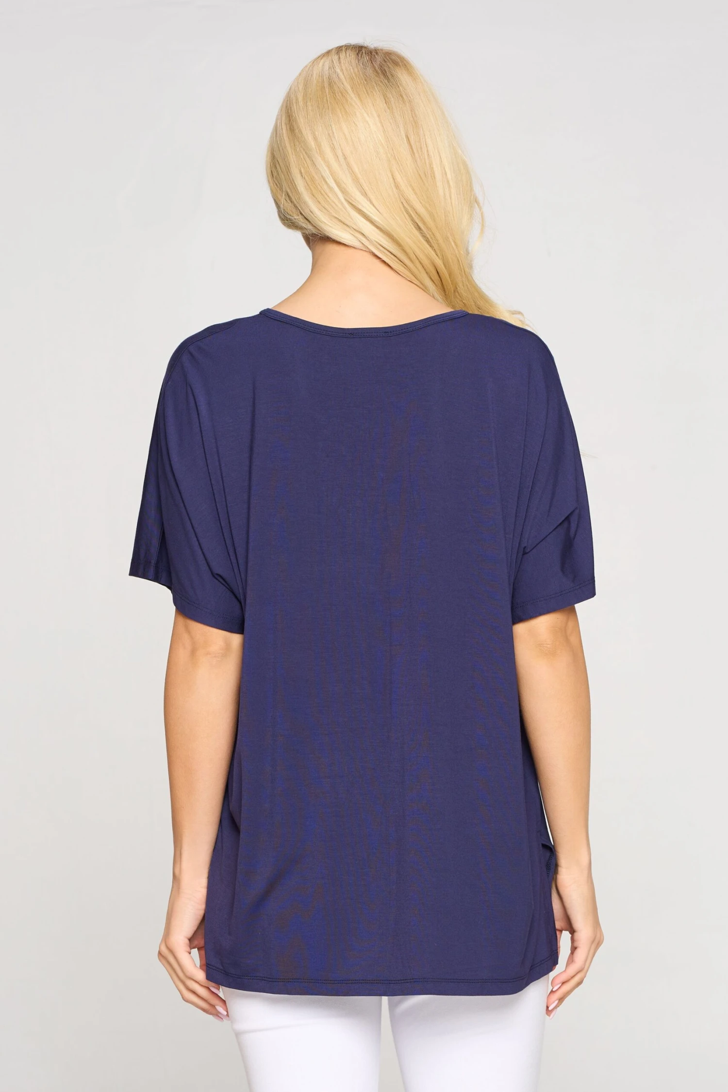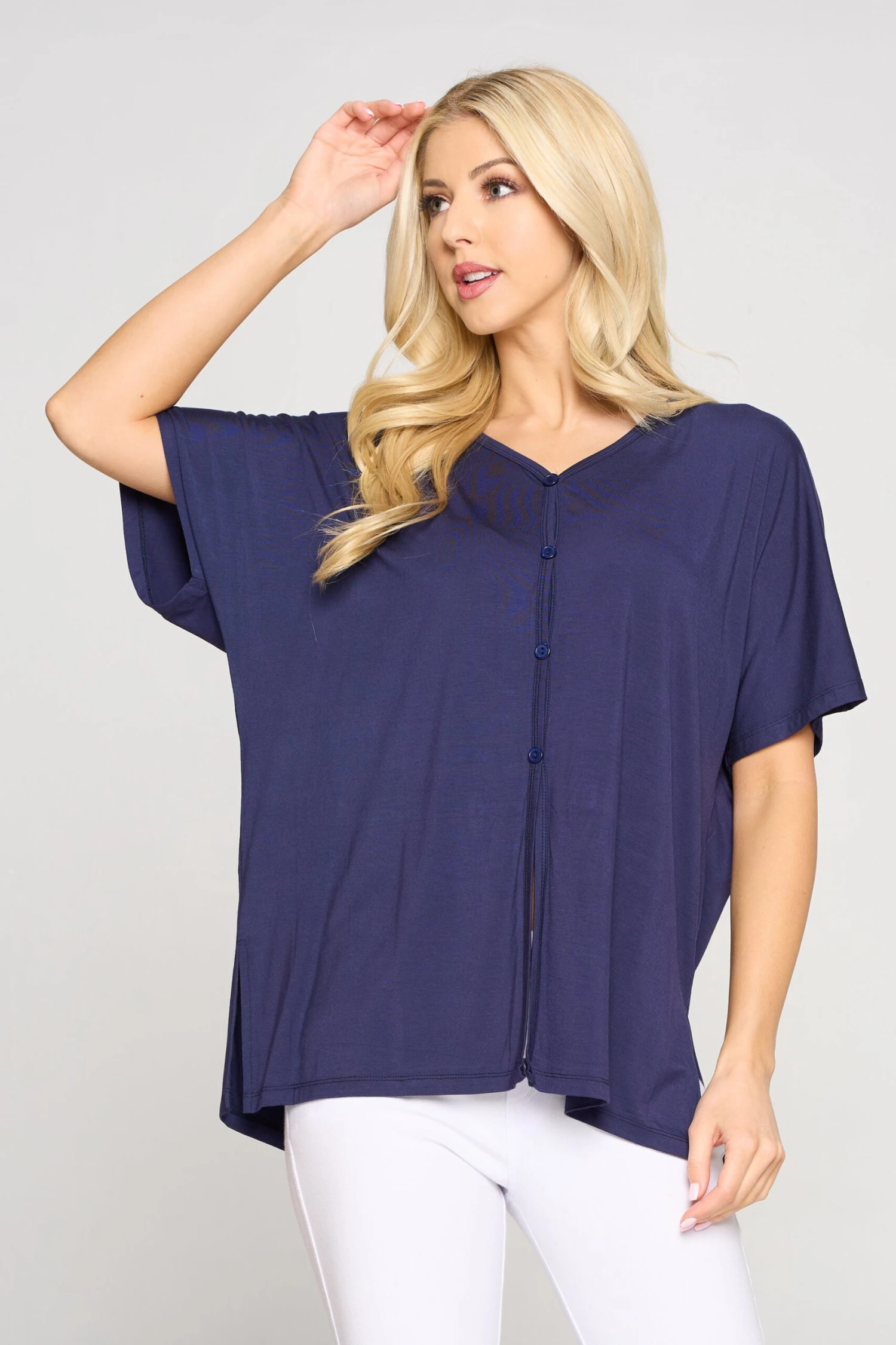 This simple button up top features short sleeves, a flattering v-neckline, and is constructed with soft, stretchy, knit material we all love!Â