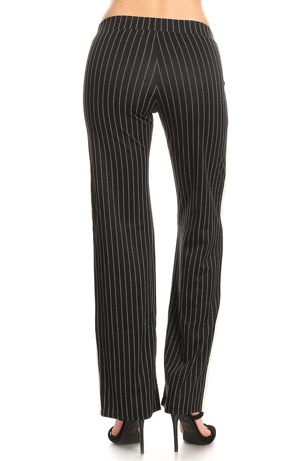 A fixture of feminine fashion for ages, this whisper-light wide leg pant has a sophisticated structure for the modern girl who aims for classic status. Contemporary striped pattern add casual vibes making these ponte pants ideal to wear for any occasion.