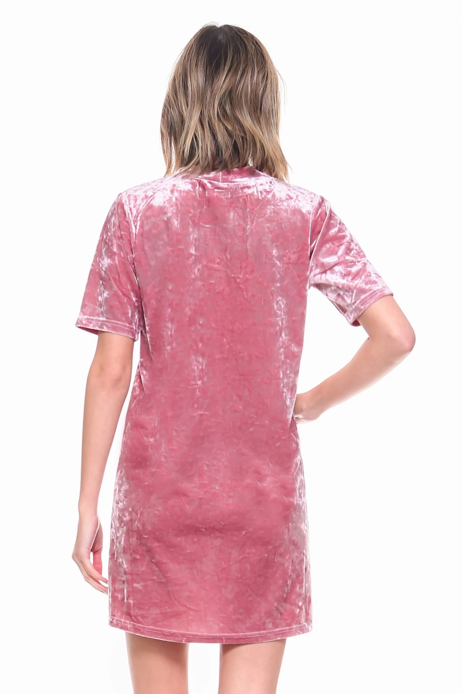 What should you wear on your next night out? We vote velvet! Say hello to the  velvet t-shirt dress that will make you pop and feel comfortable! Pair with booties or sneakers for a street wear look.Â