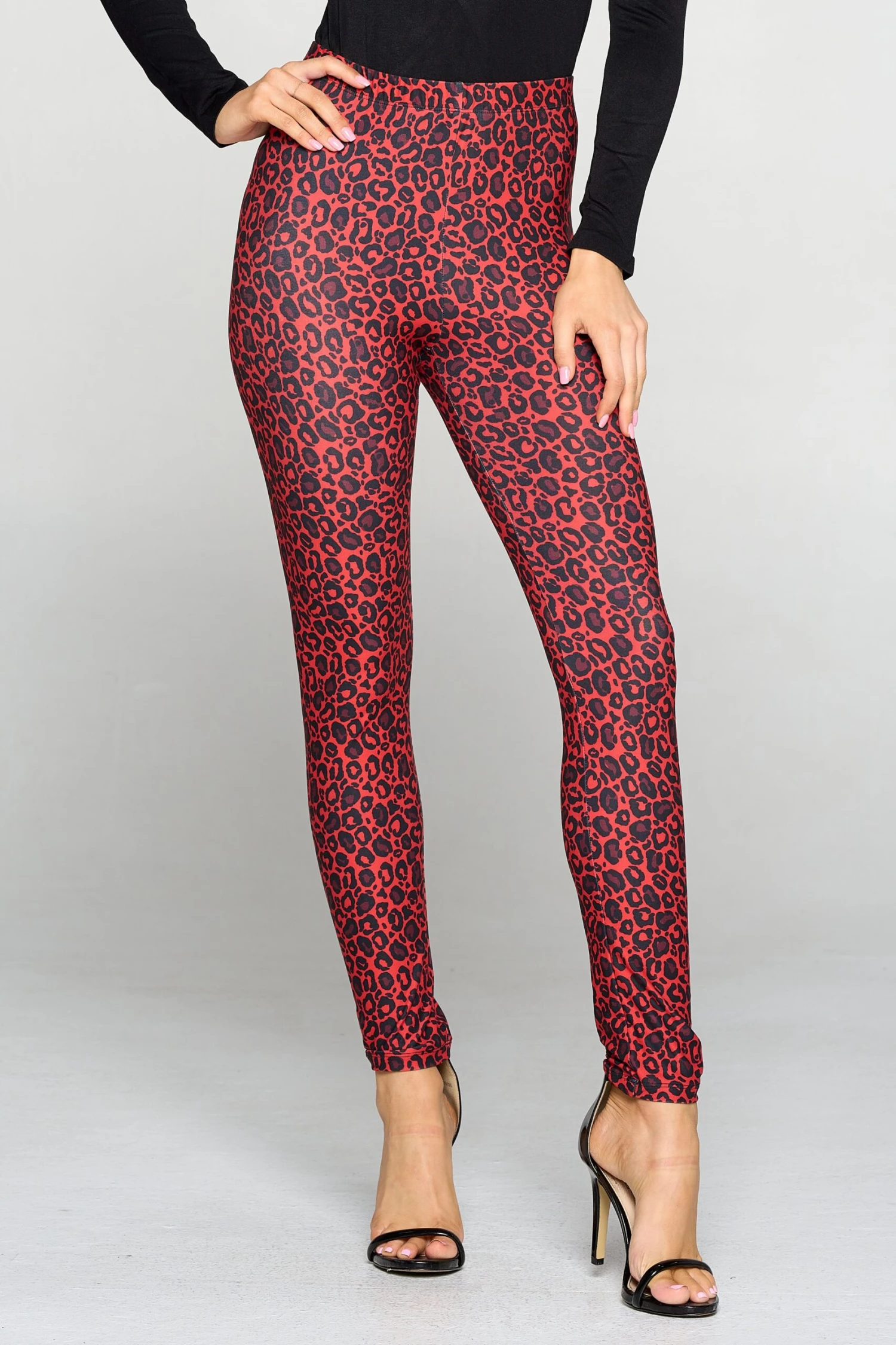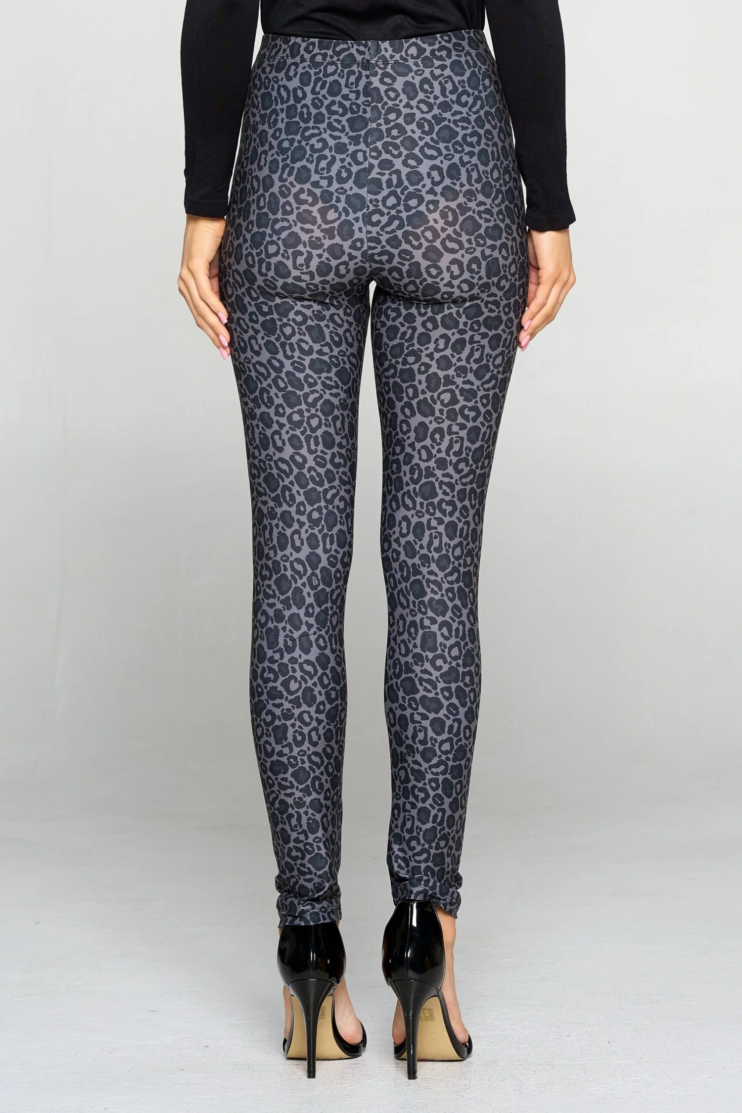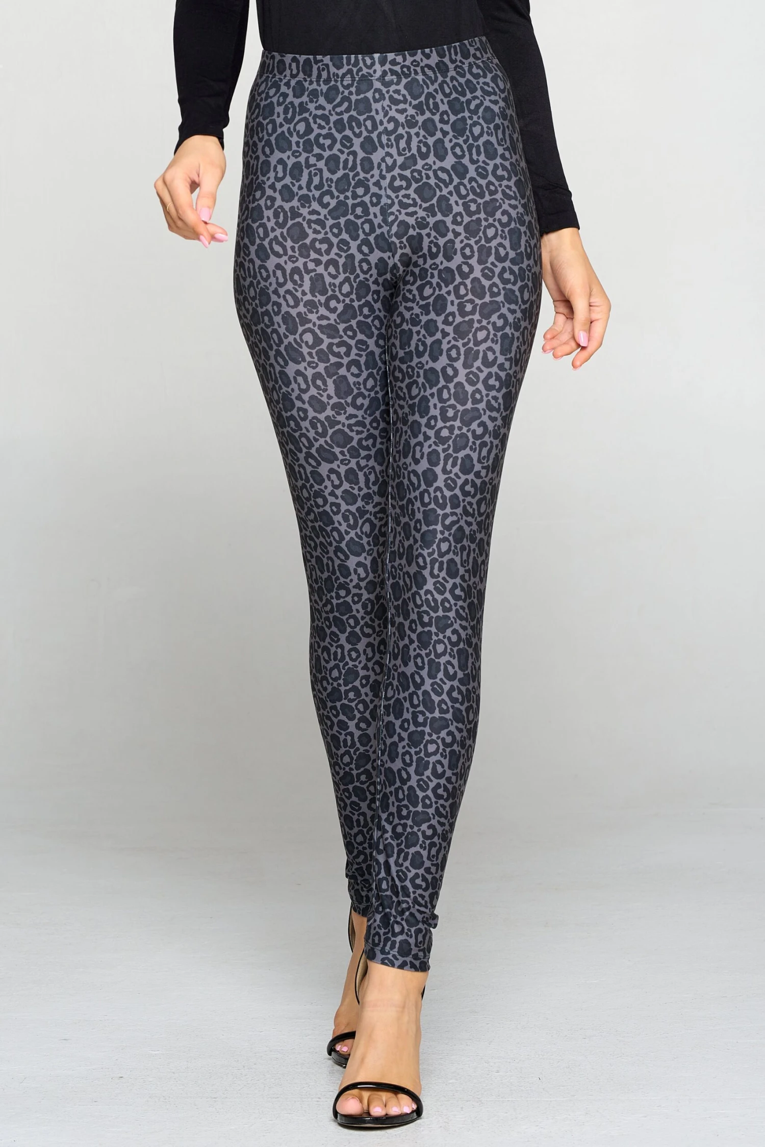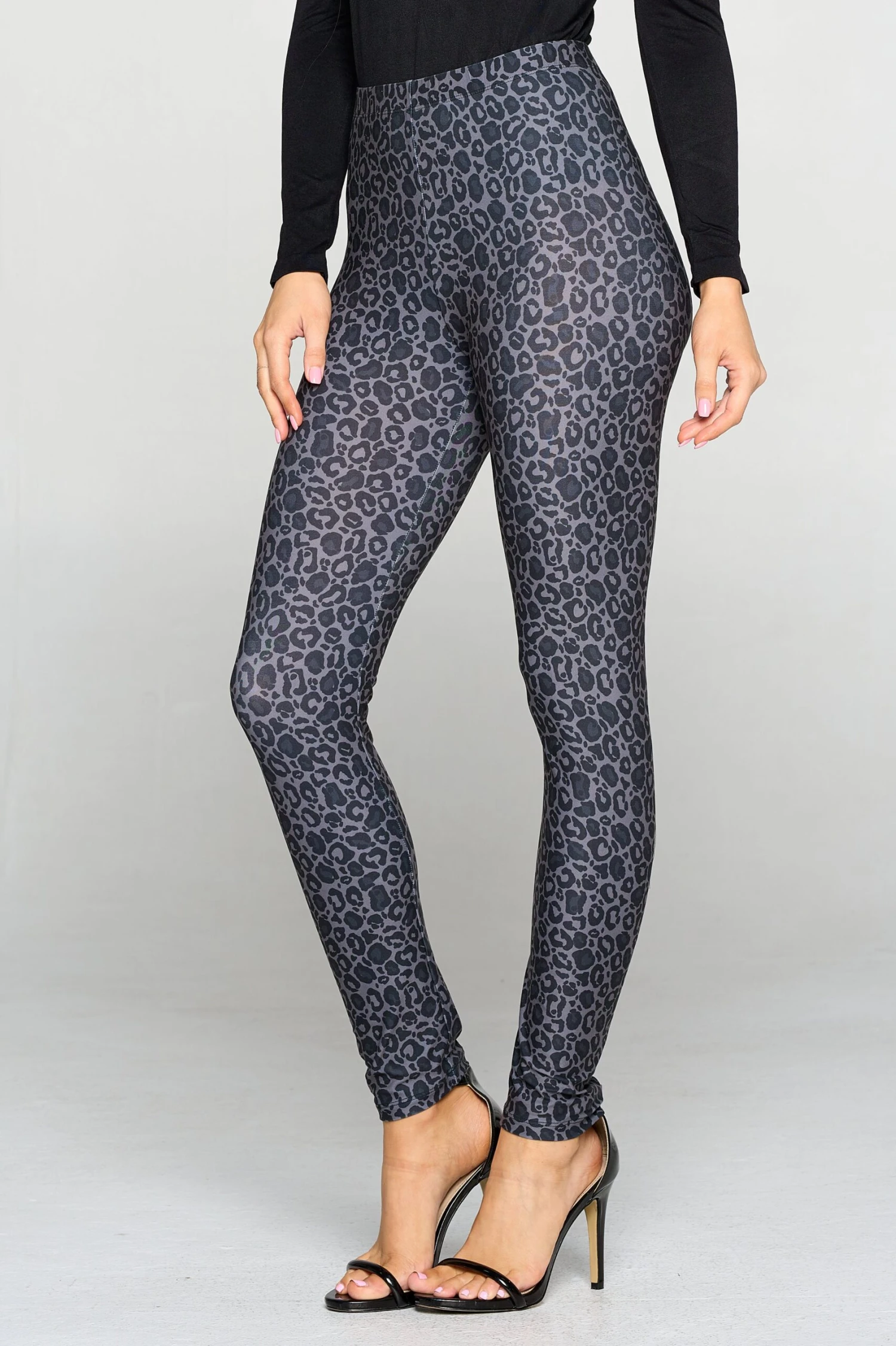Your next look with these dark leopard print leggings will definitely be a fave! Featuring soft, peach skin fabric with vivid leopard print printed throughout this skinny leg design.Â