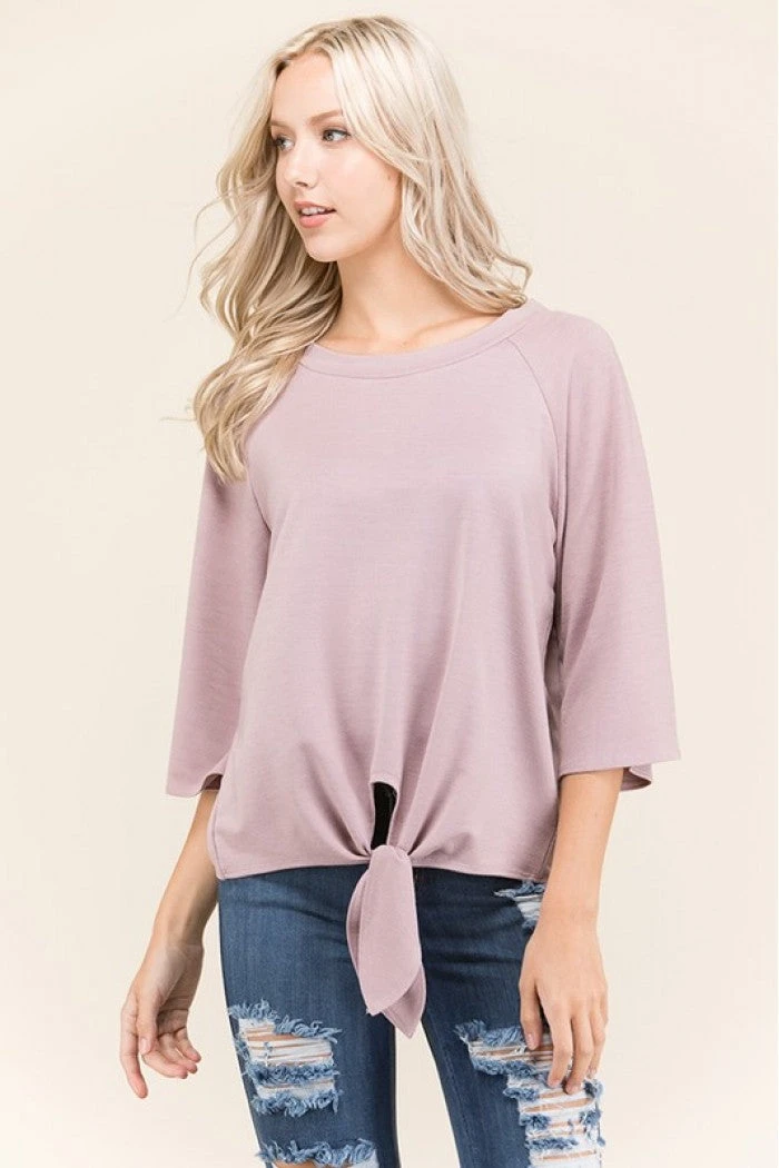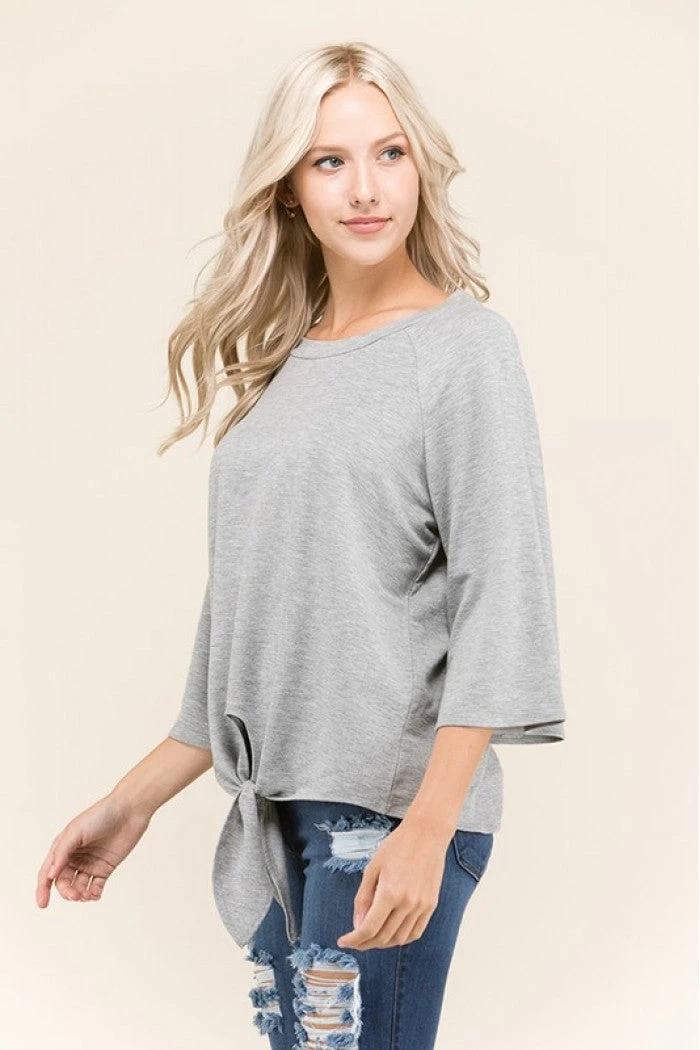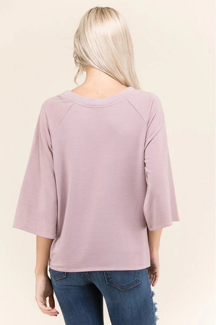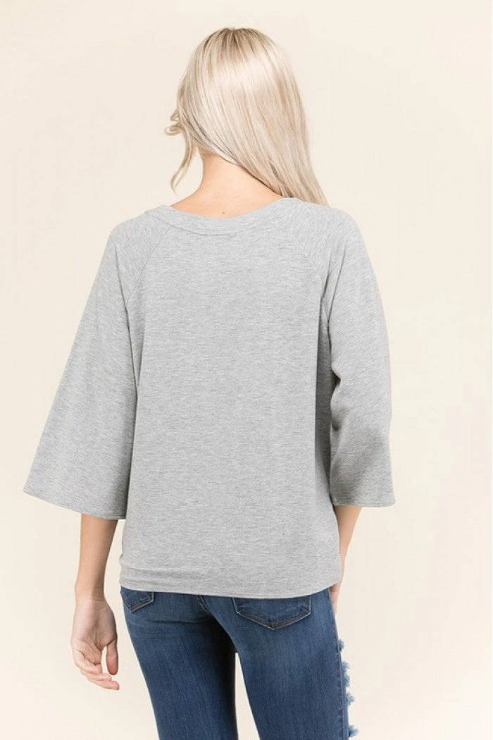 A casual raglan design with a twist! This super comfy tee features retro raglan sleeves in an over-sized boxy silhouette and is finished with a keyhole tied hem.