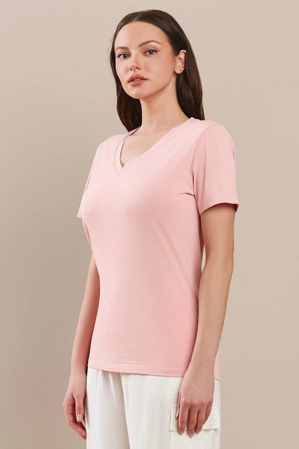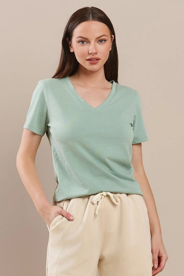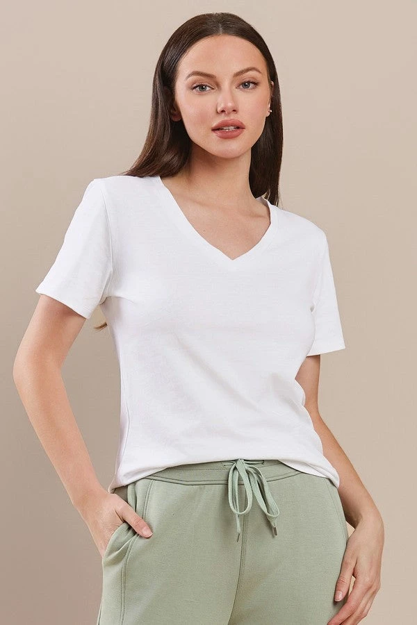 Every closet needs a T-shirt or two. This 100% cotton T-shirt has a V-neck for that extra touch of style. Whether you’re running errands or grabbing brunch, this shirt is the perfect fit.