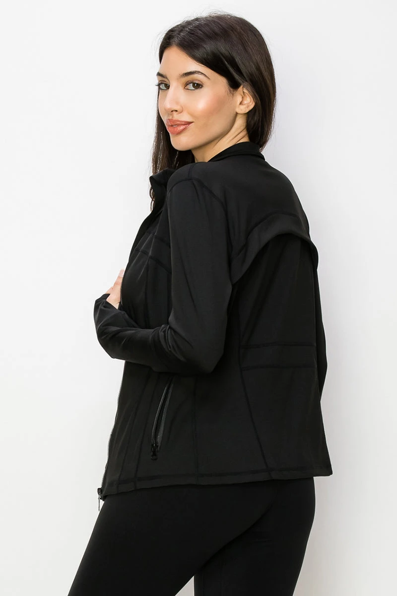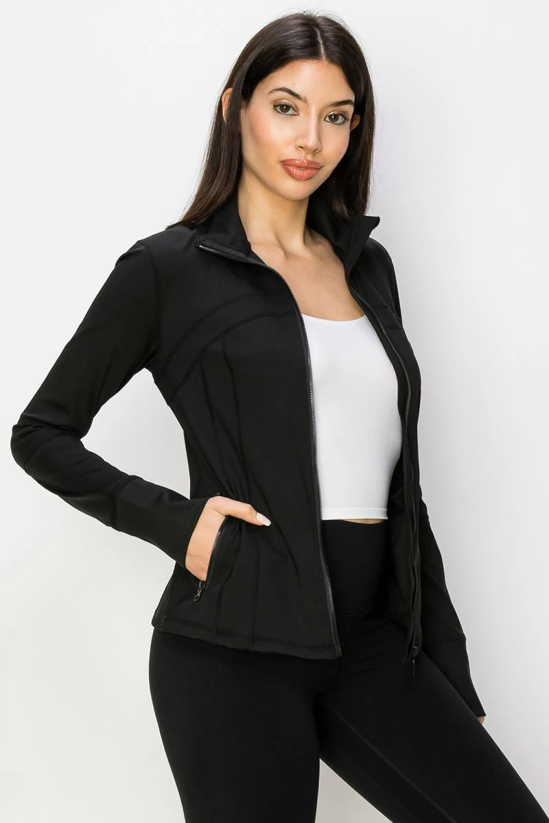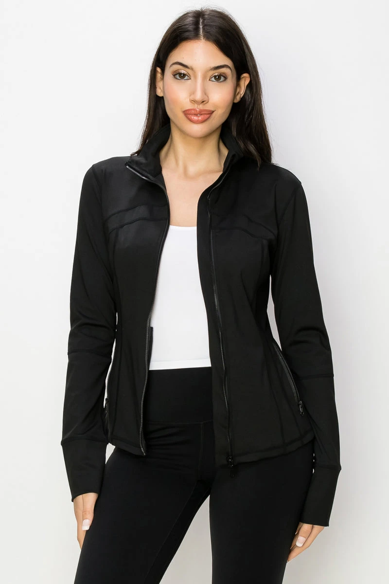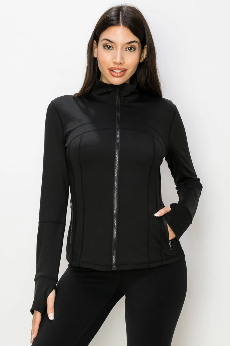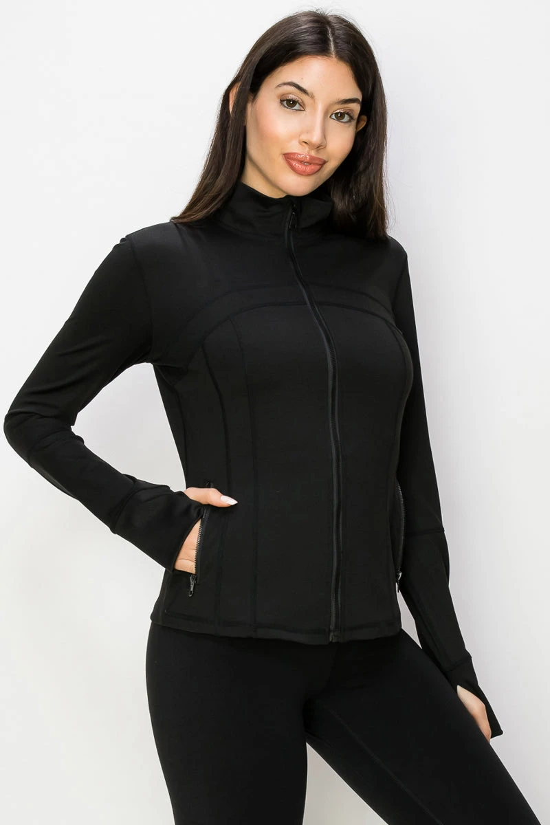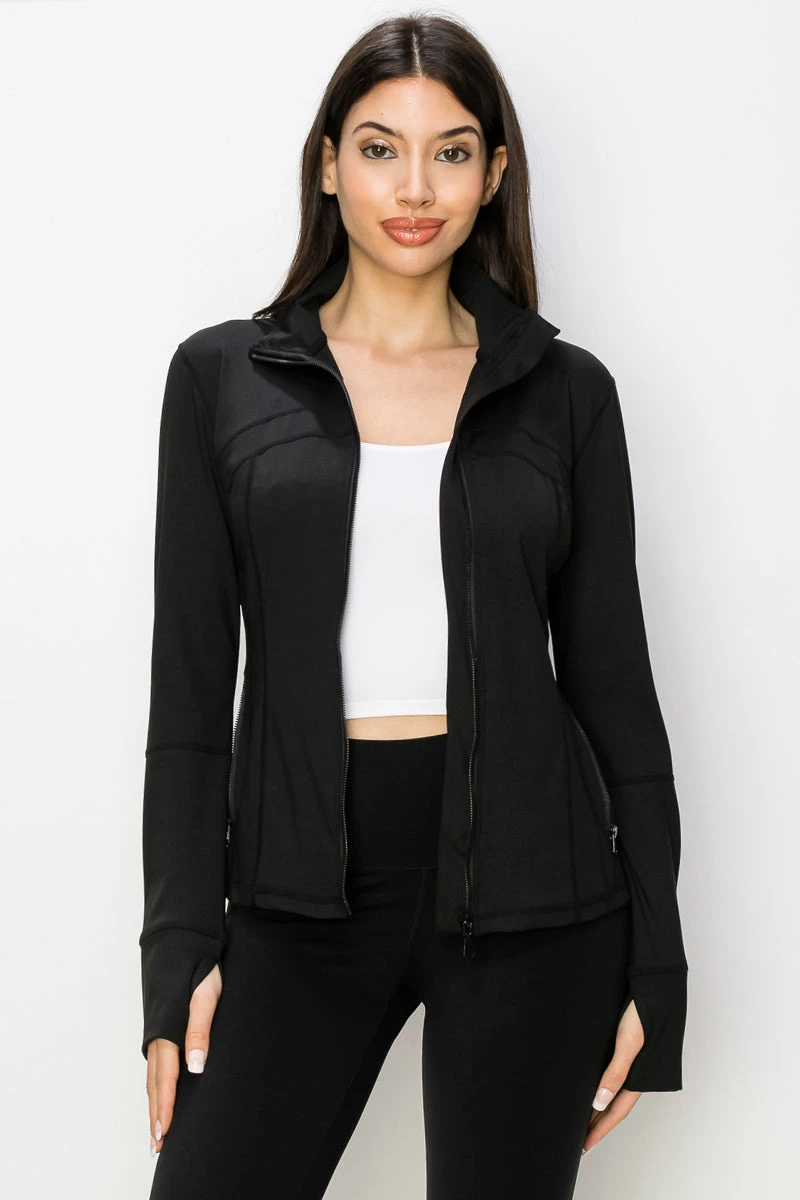 Featuring a fitted silhouette, this performance jacket has long sleeves with thumb loops, a full front zipper for closure, and two pockets on each hip.