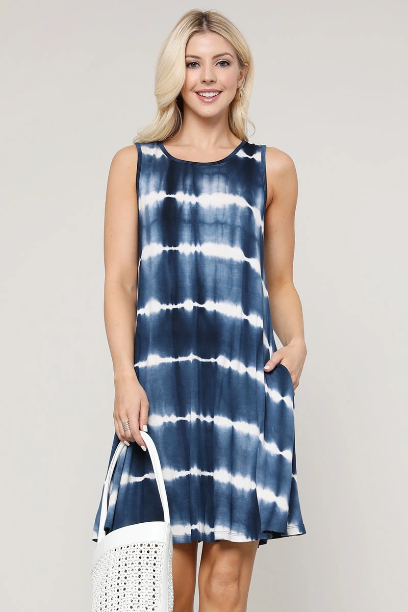 Feel the sun on your face and sand inbetween your toes as you get ready for an island getaway, but don’t forgot this dress in your suitcase! It features a premium tie-dye print and two open side pockets for your beach day essentials. This tunic dress is also versatile so you can wear it as a cover-up over your swimsuit or by itself!Â