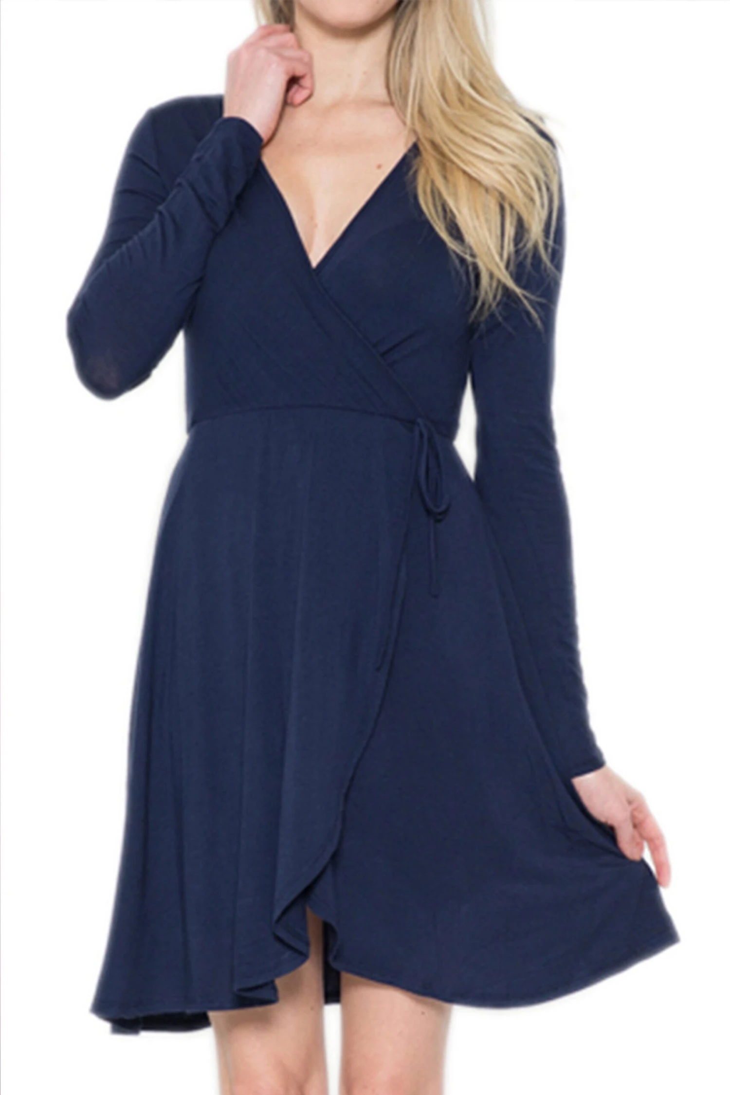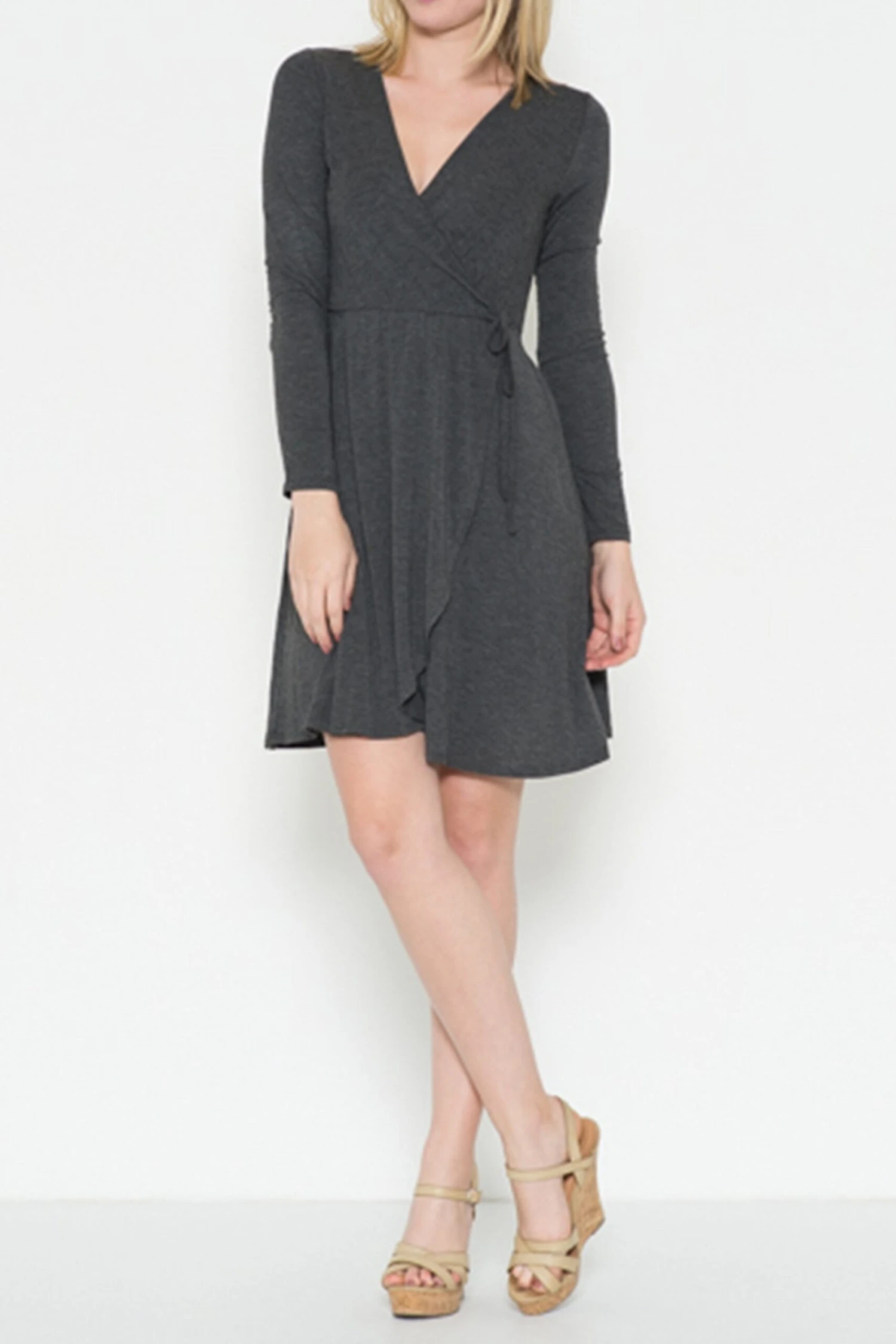 Let the compliments begin in this adorable wrap dress featuring a ballet-inspired wrap bodice and above the knee hem.Â