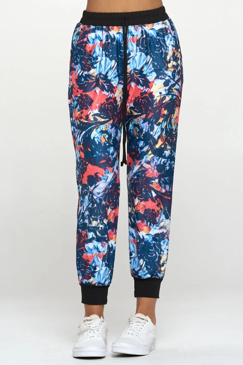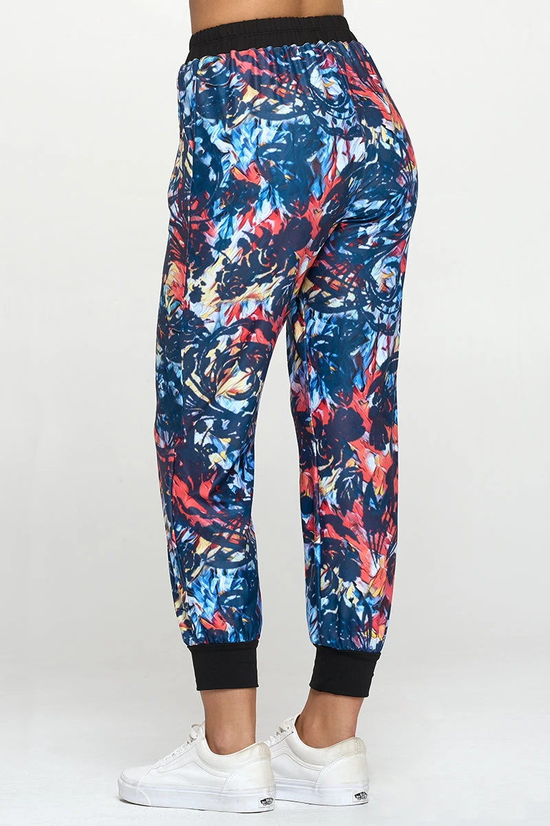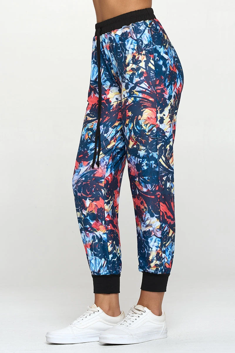 Get lost in this trance of a design! Our high rise joggers are constructed with lightweight, stretchy fabric and feature banded cuffs with a drawstring closure.