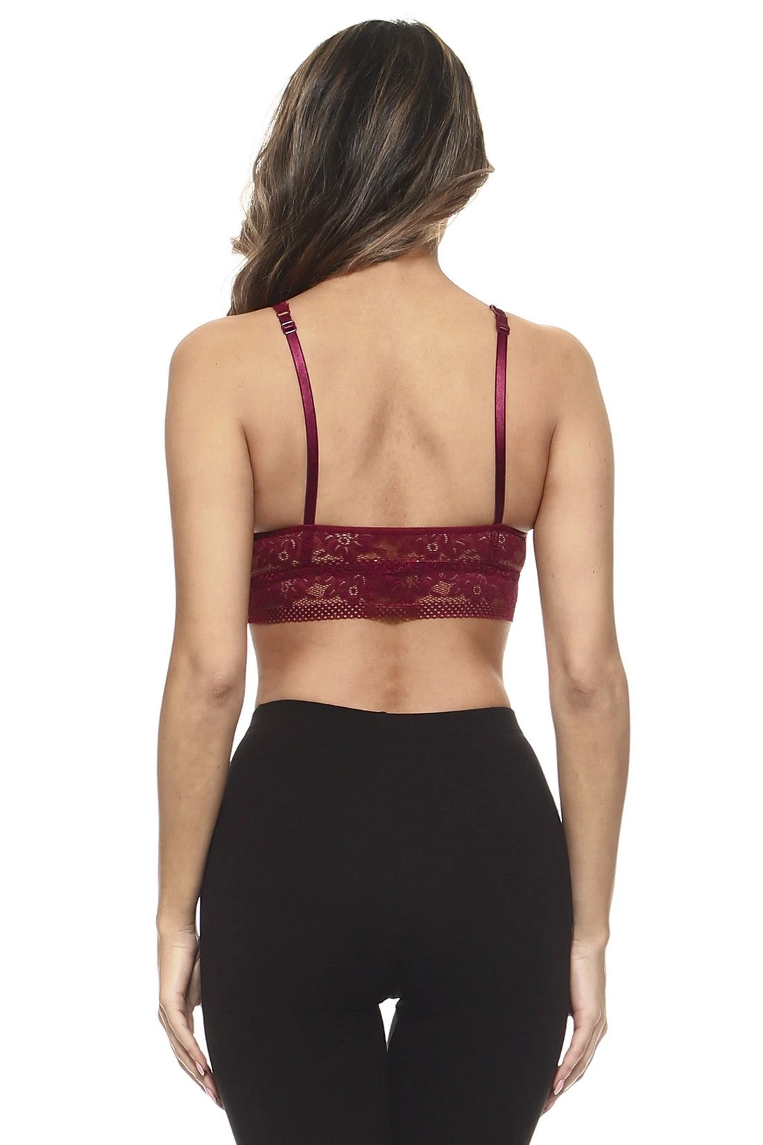 Floral lace makes a flirty bralette, that flaunts a longline silhouette with a sheer band! Elastic adjustable straps sweep over the shoulders in a thick laced band featuring dual caged detail for a stylish finish. Perfect for wearing under an oversized tee with your favorite jeans!Â