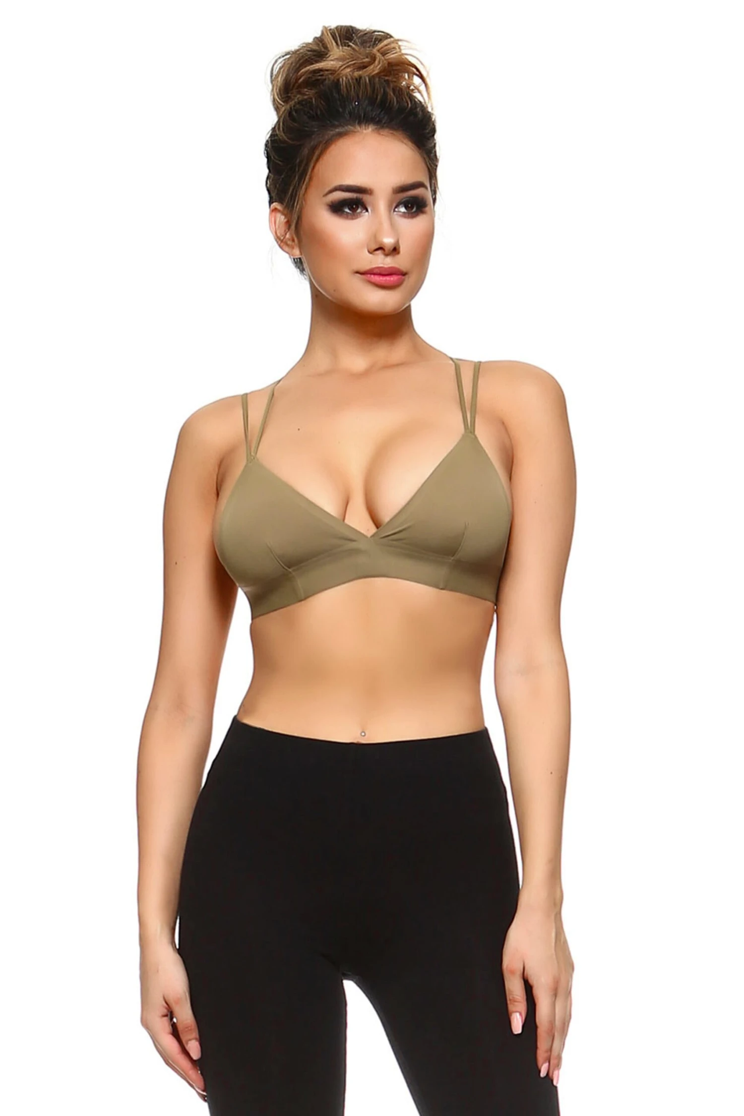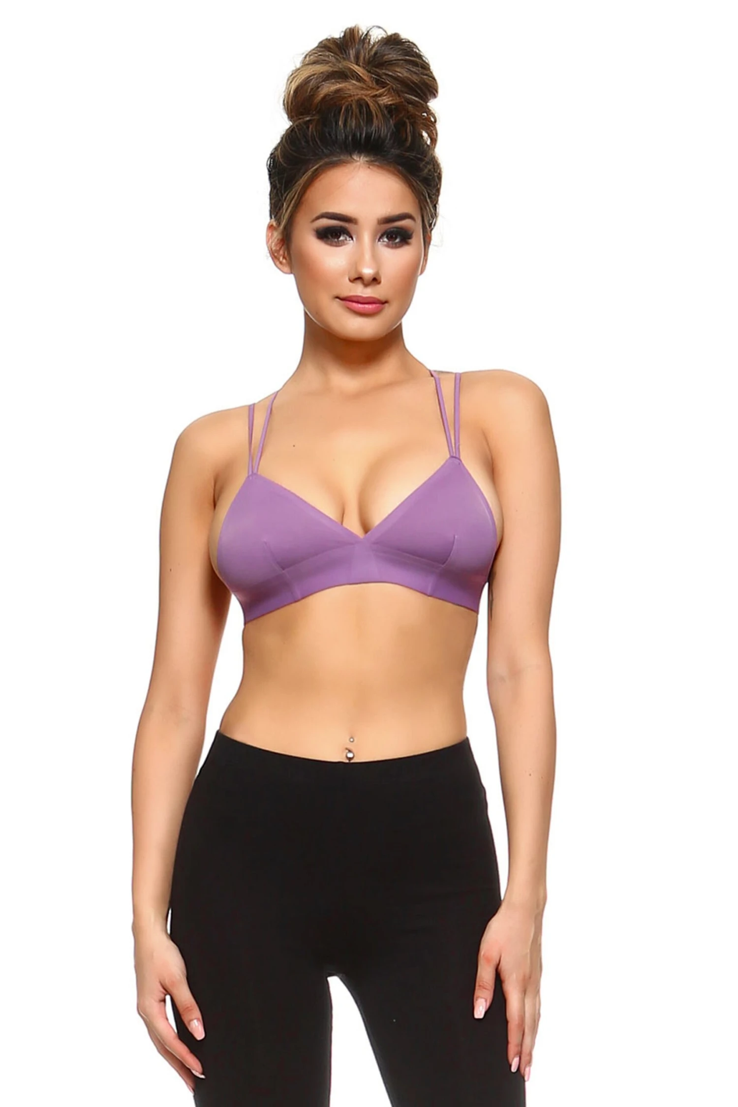This strappy back design is begging to be seen! Featuring stretchy elastic double cross back straps for incredible style, silky smooth nylon for comfort and wire free construction for light support. Layer under your favorite semi-sheer styles!