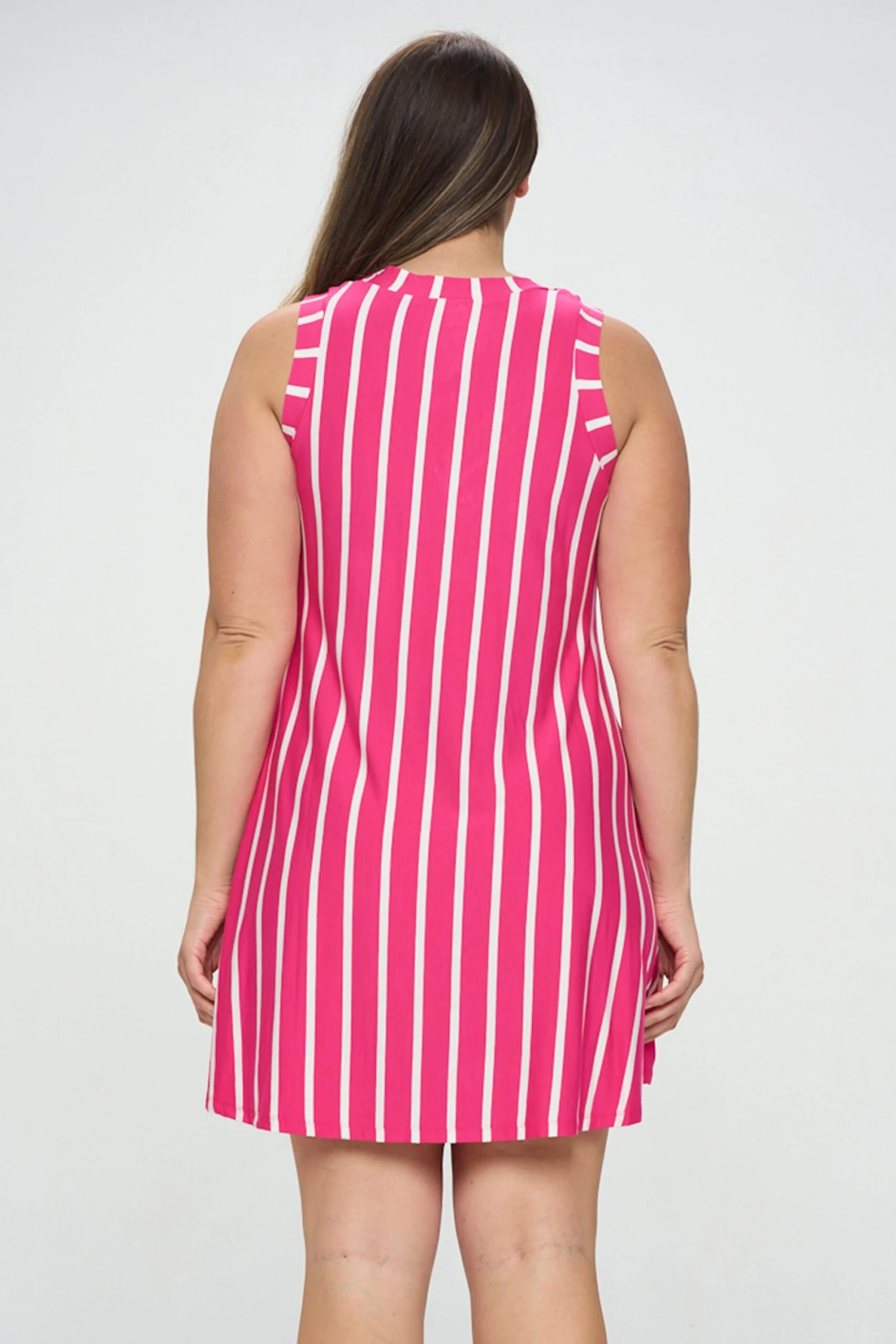 The perfect lightweight dress for the spring/summer time. Featuring v-neckline, and a-line design with two hidden side pockets.