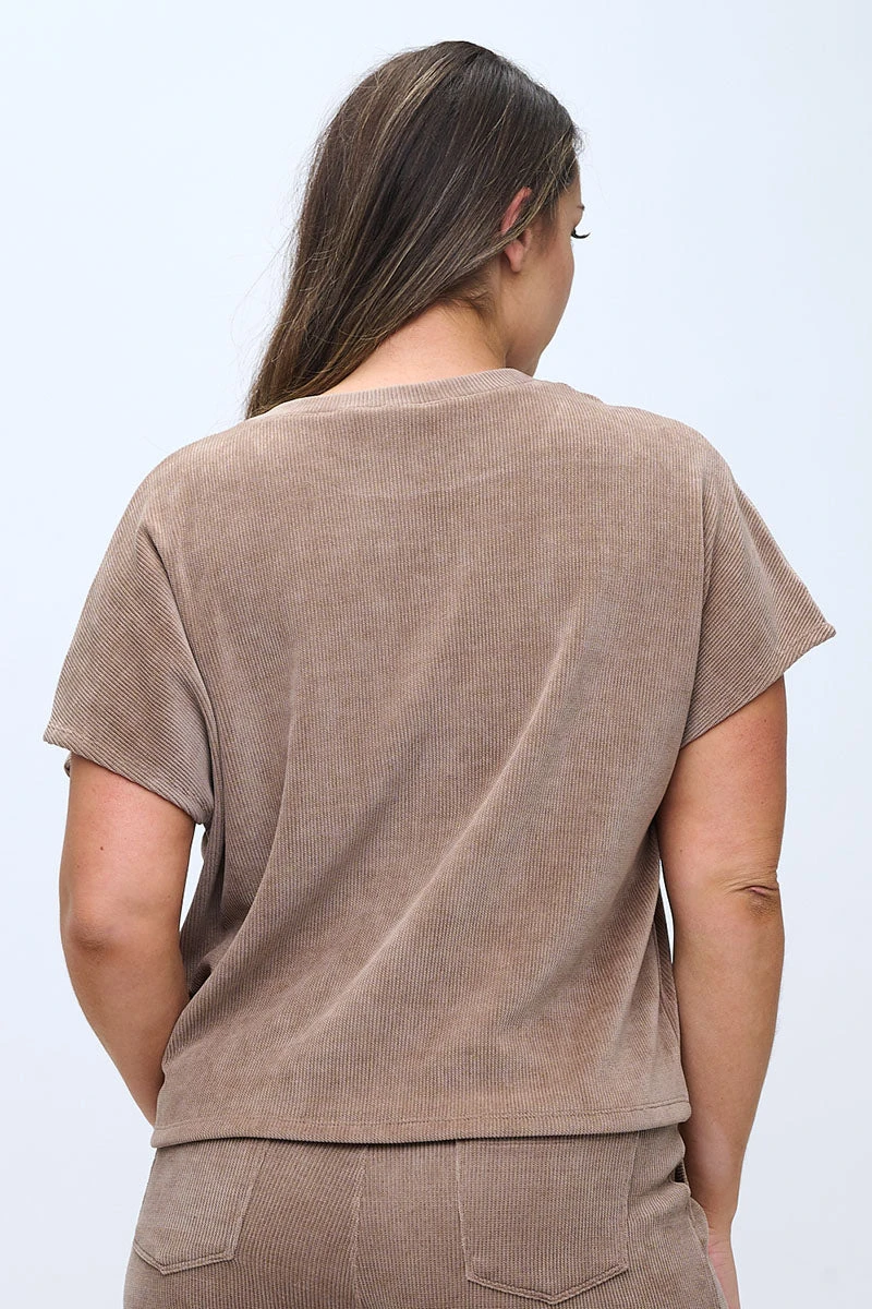 Feel retro cozy in this corduroy raglan sleeved top – a perfect fit for warmer weather. The laid-back and effortless loose fit style with a casual crew neckline make this a leisurewear essential.