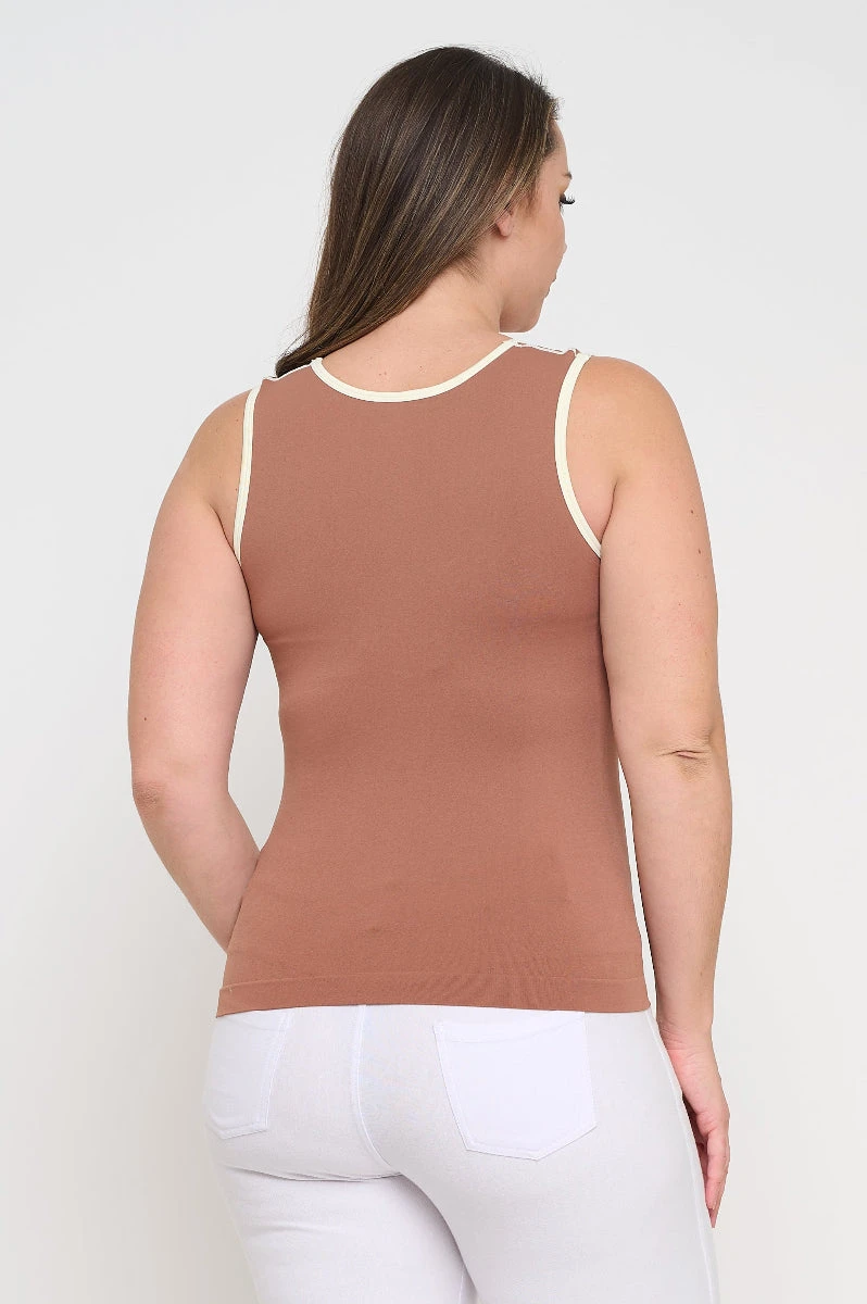 This seamless tank top is crafted from breathable, soft-spun fabric and features a scoop-style U-neckline. Designed with a stretchable slim fit and lightweight feel, it’s perfect for effortless summer style. An essential for your wardrobe, this versatile tanktop can be worn alone or layered, making it ideal for casual wear or or athleisure outfits.