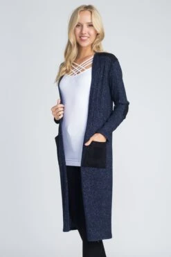City Girl Faux Suede Patch Lurex Knit Duster Cardigan