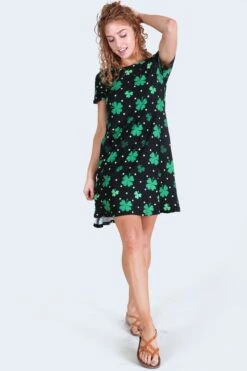 Stay Lucky 4-Leaf Clover Plaid Printed Dress With Pockets