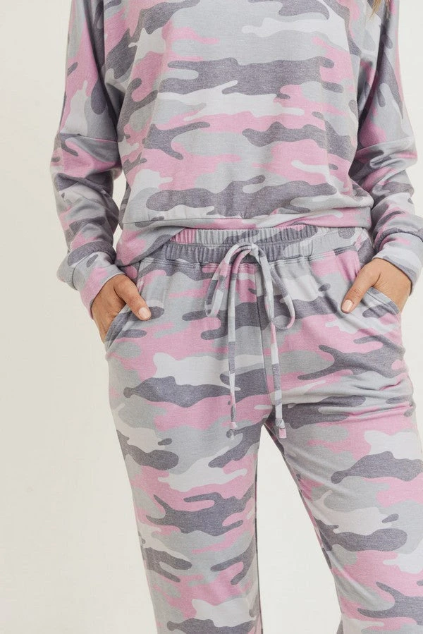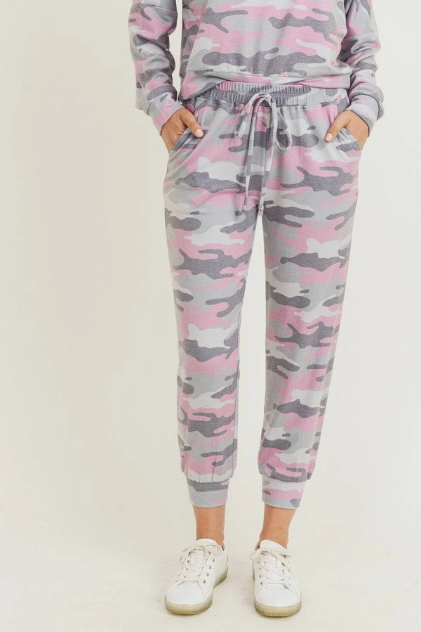 Kick back and relax in these cozy pink Camo Print Vintage Joggers. These joggers feature a high-rise elasticized waistband, two pockets and a cuffed hem. Shop our Relaxed Camo Print Pullover Top to complete the set.
