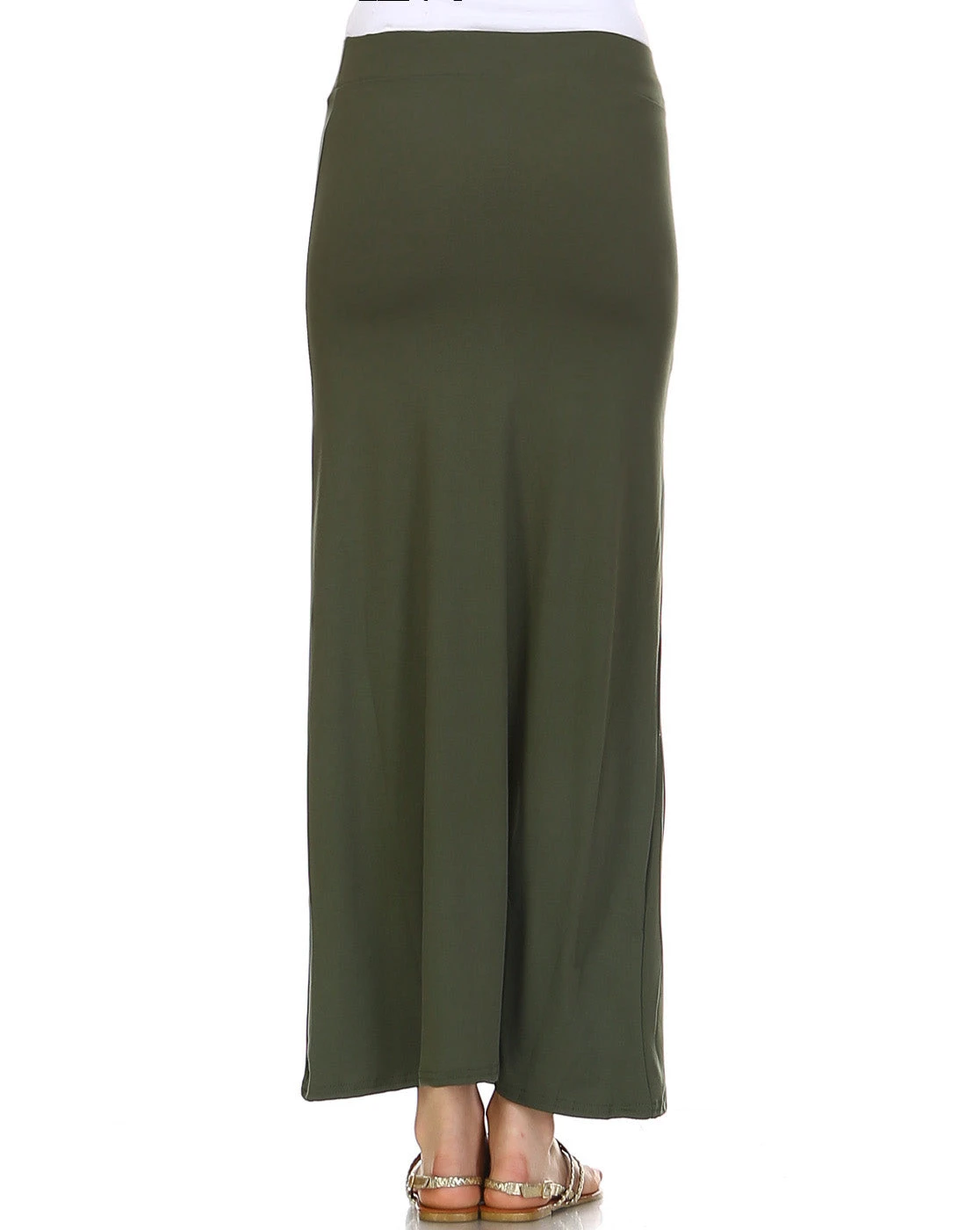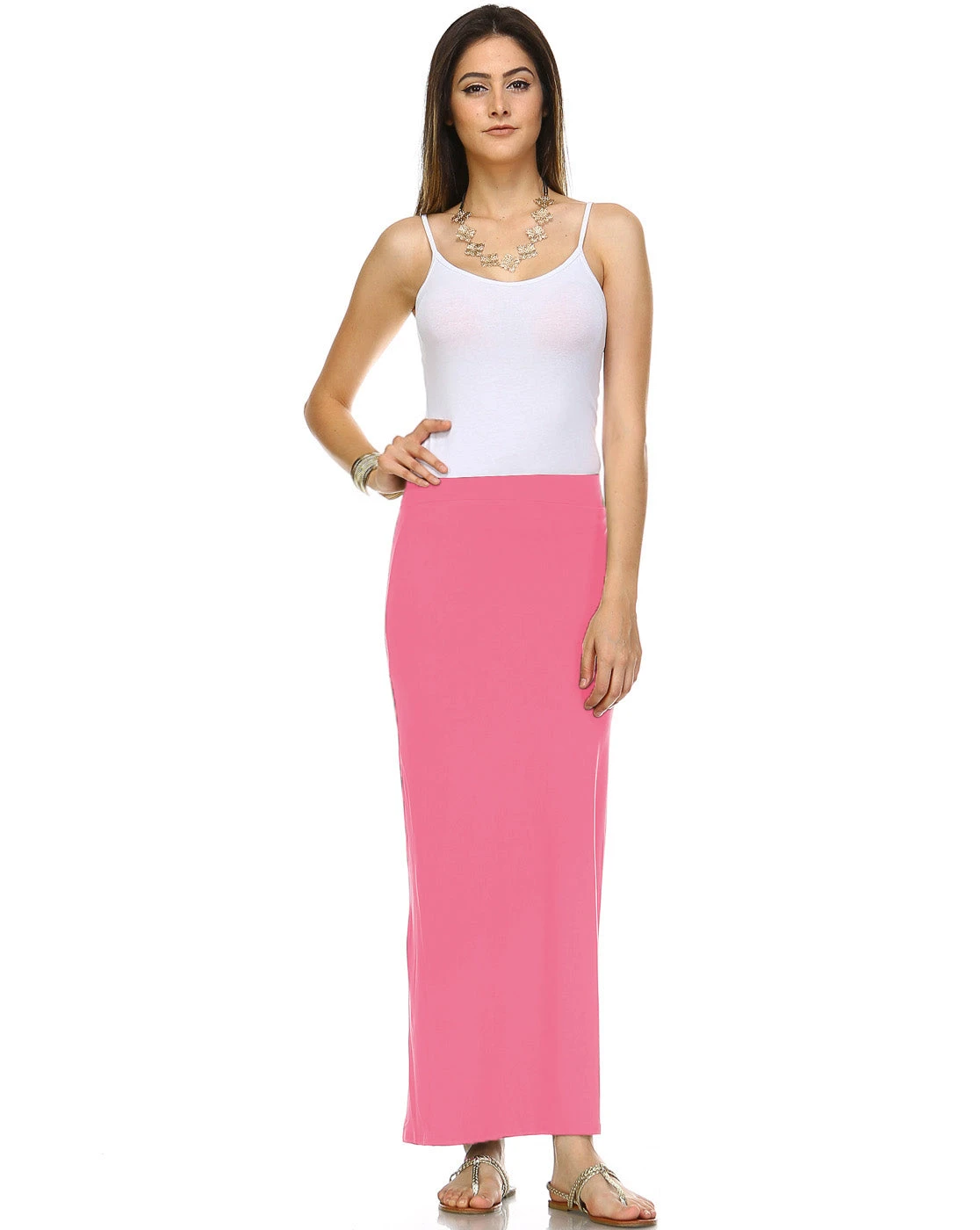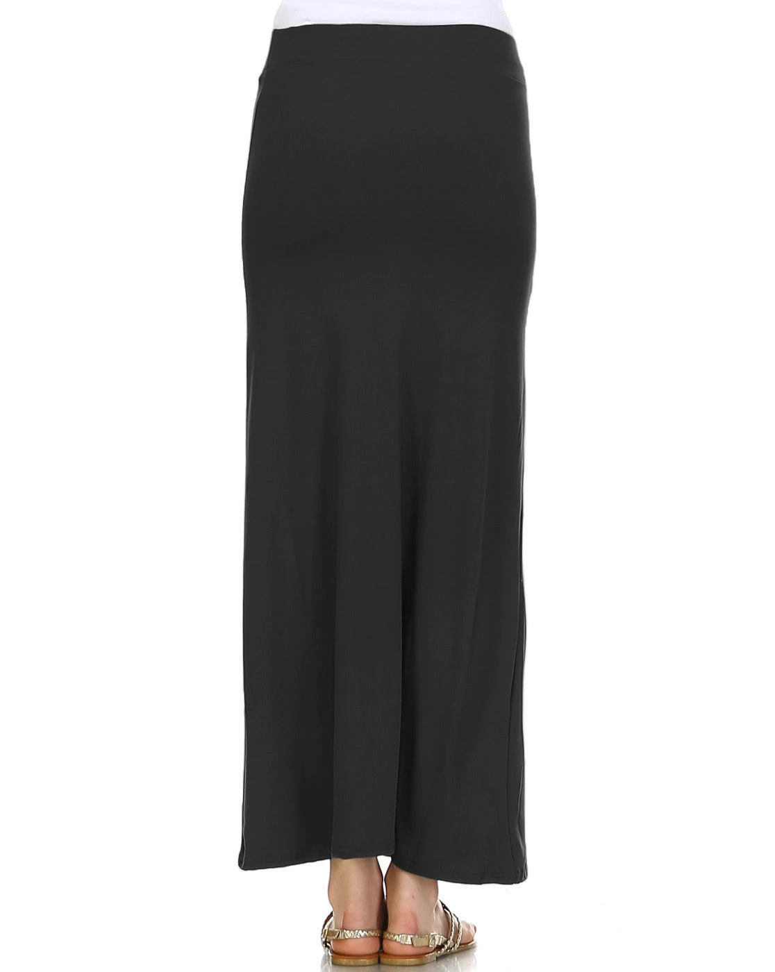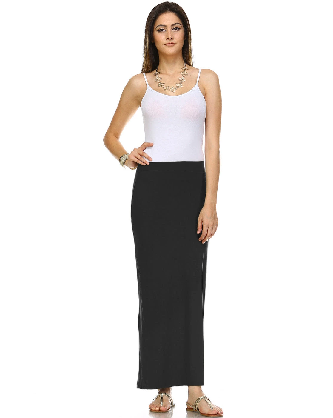 Enjoy the simple things in life wearing this maxi skirt! It has an elasticized waist and a floor length hem that elongates your body.The soft, jersey knit fabrication drapes over your curves comfortably. Complete the look with a casual denim jacket and sneakers or opt for block heels when going out at night.Â
