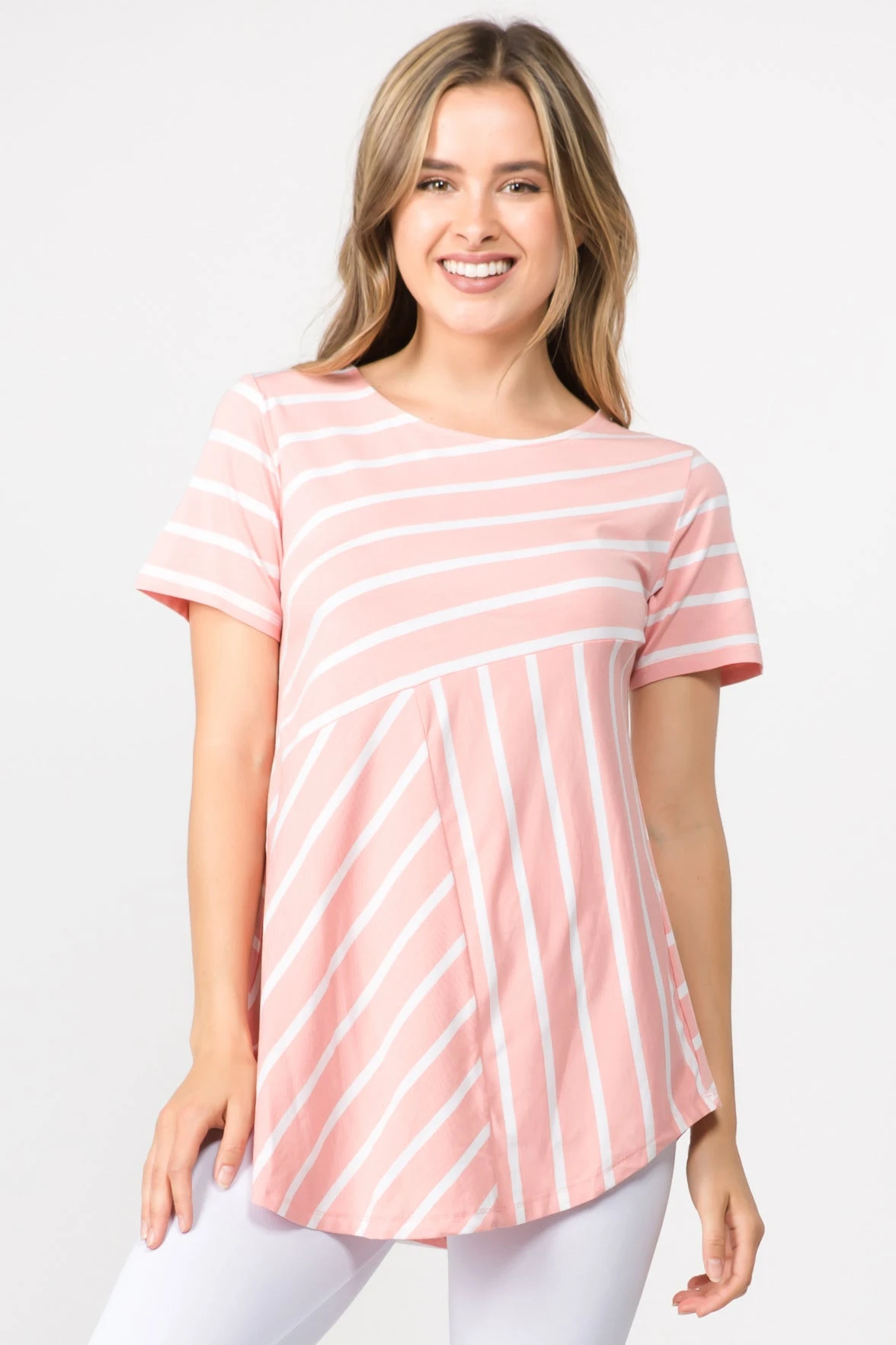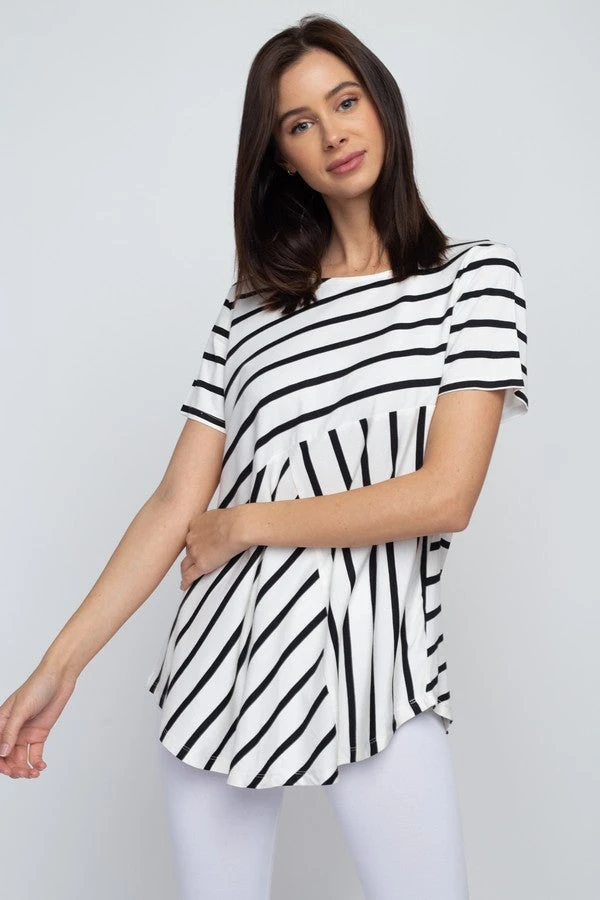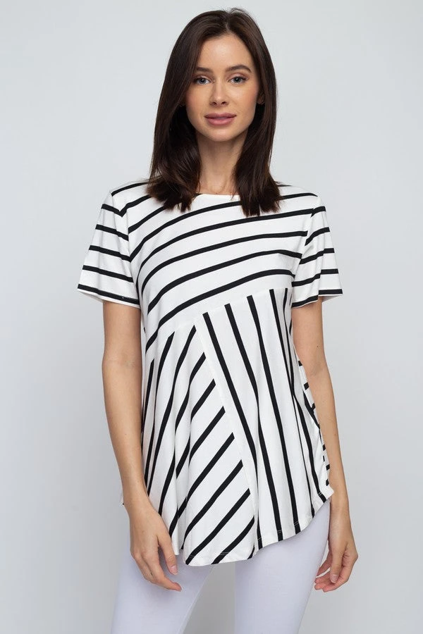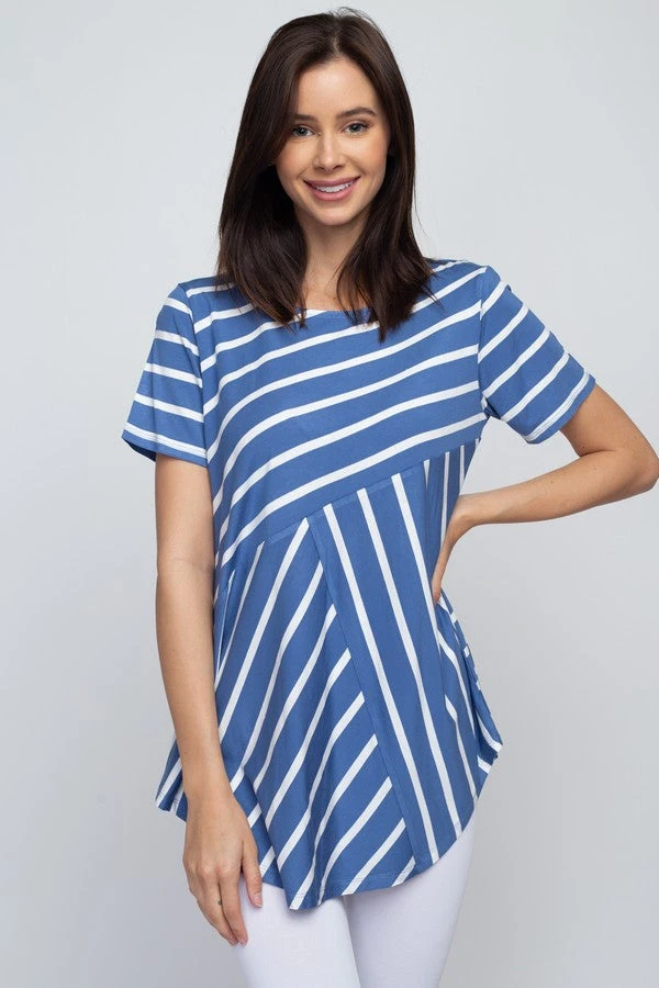 This striped short sleeve top effortlessly styles with your favorite skinny jeans or leggings!