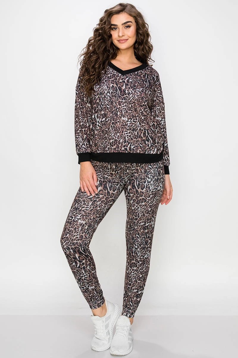 Add some leopard print to that collection of yours babe! This matching two piece set features a V-neck long sleeve and a high-rise pair of joggers that are both printed with trendy leopard we all are obsessed with!