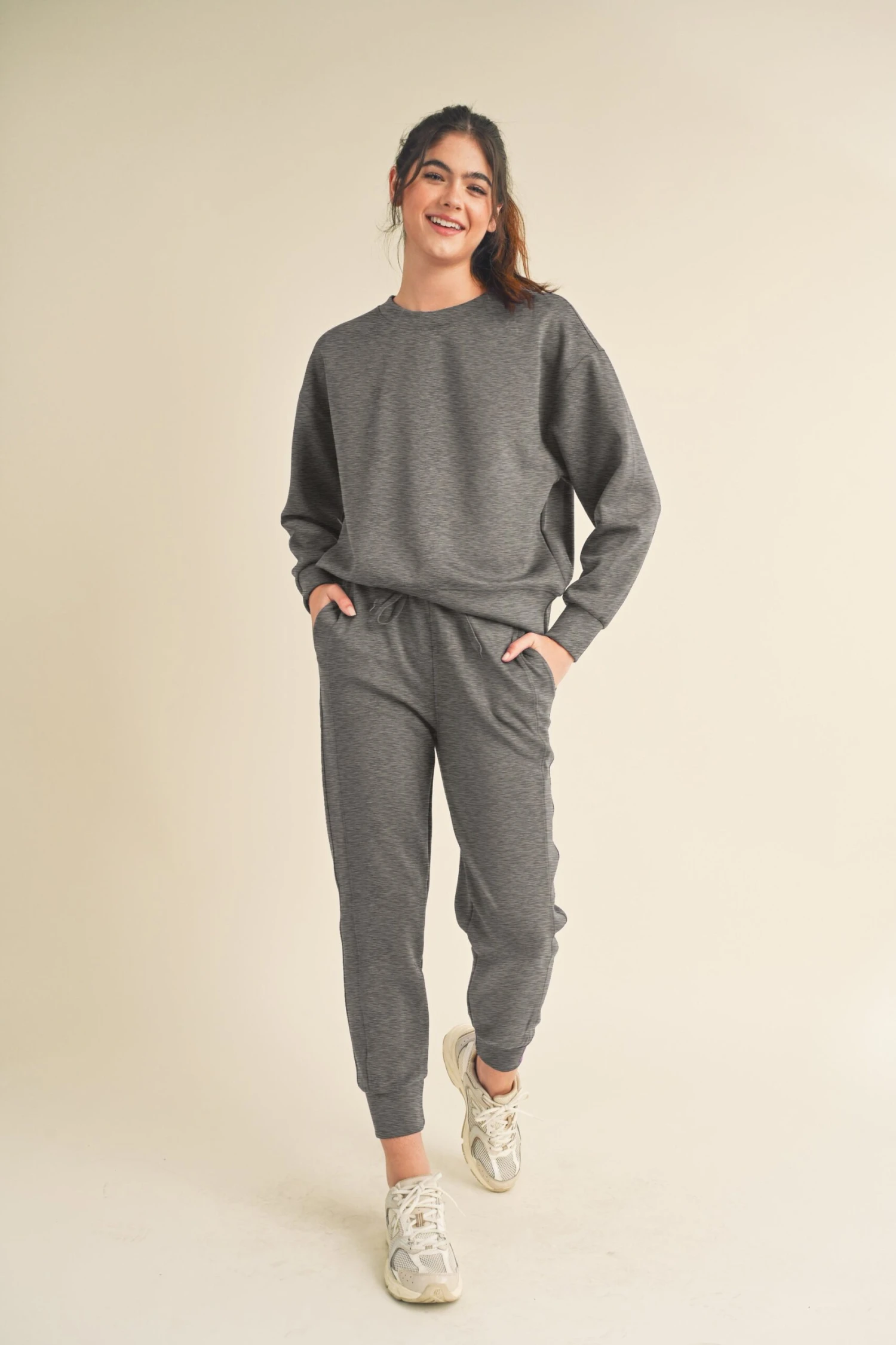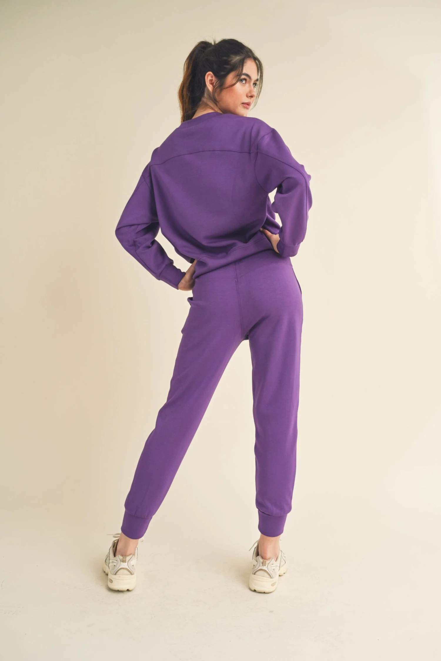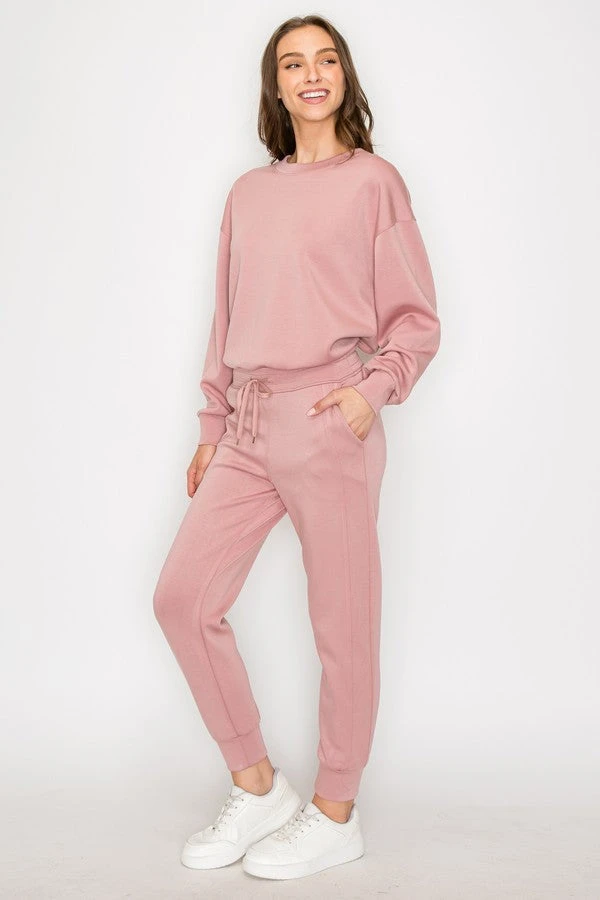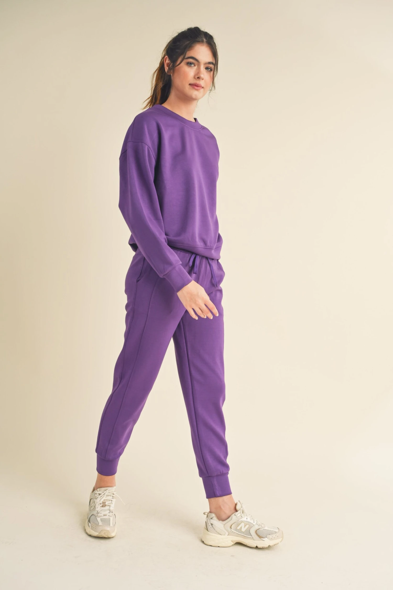 This sweatshirt and jogger set is crafted with lightweight fabric for maximum comfort. A cuffed hem and sleeve design, as well as a crewneck and drawstring waistband, provide versatile styling and fit.