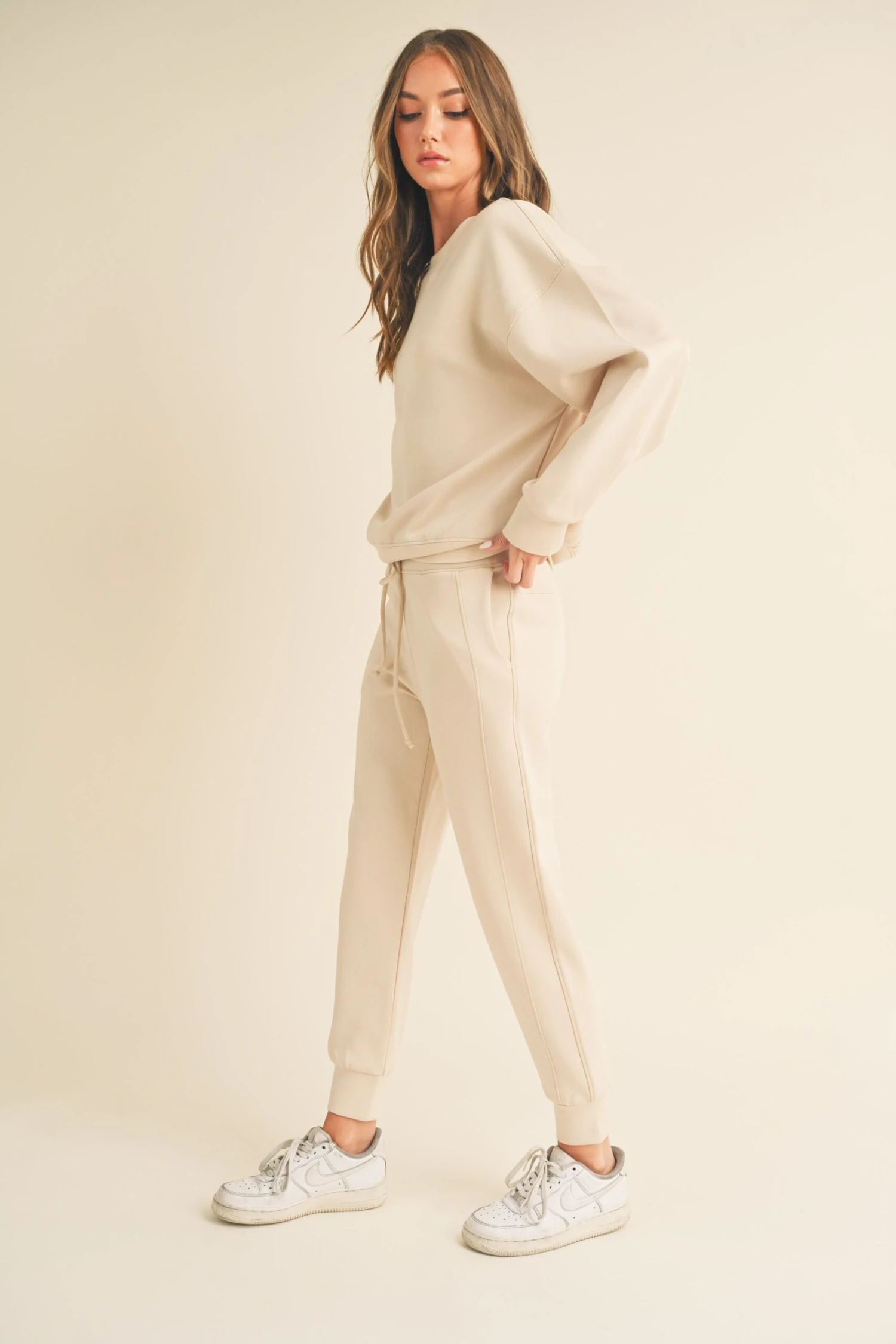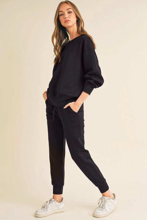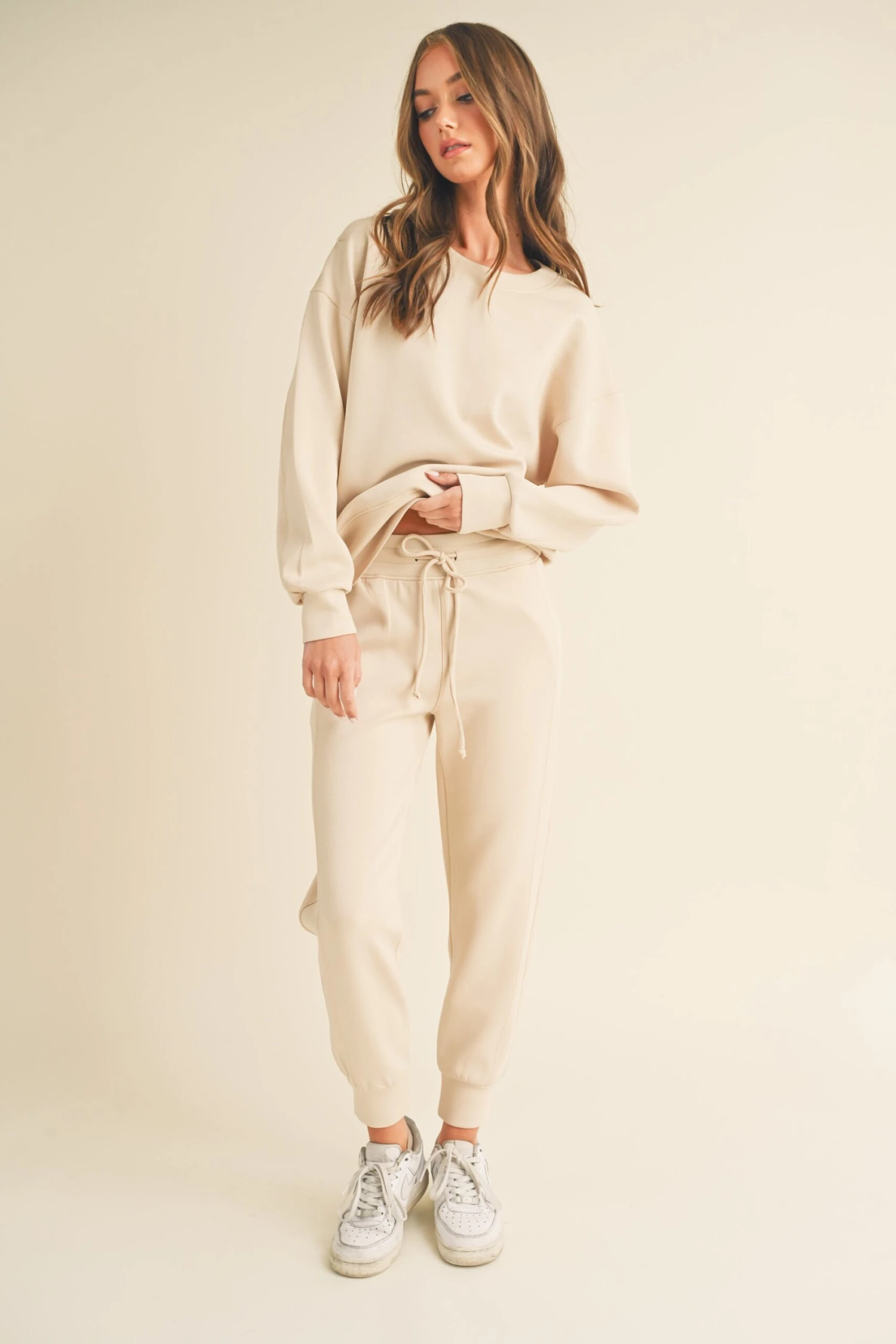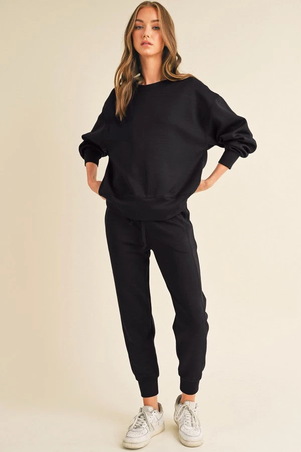 This sweatshirt and jogger set is crafted with lightweight fabric for maximum comfort. A cuffed hem and sleeve design, as well as a crewneck and drawstring waistband, provide versatile styling and fit.