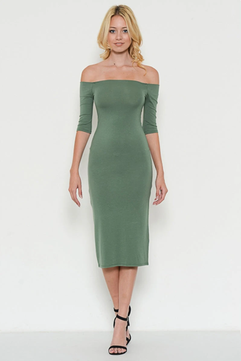 - Off the shoulder deisgn with 3/4 length sleeves Â