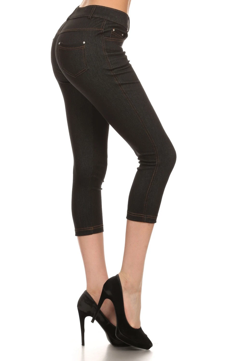 The Original is your standard 5 pocket jean capri jegging. With classic silhouette construction, the Original is smooth, stretchy, and fits like a glove. There are also rhinestones pocketing and button embellishment highlighting the look and feel. Â