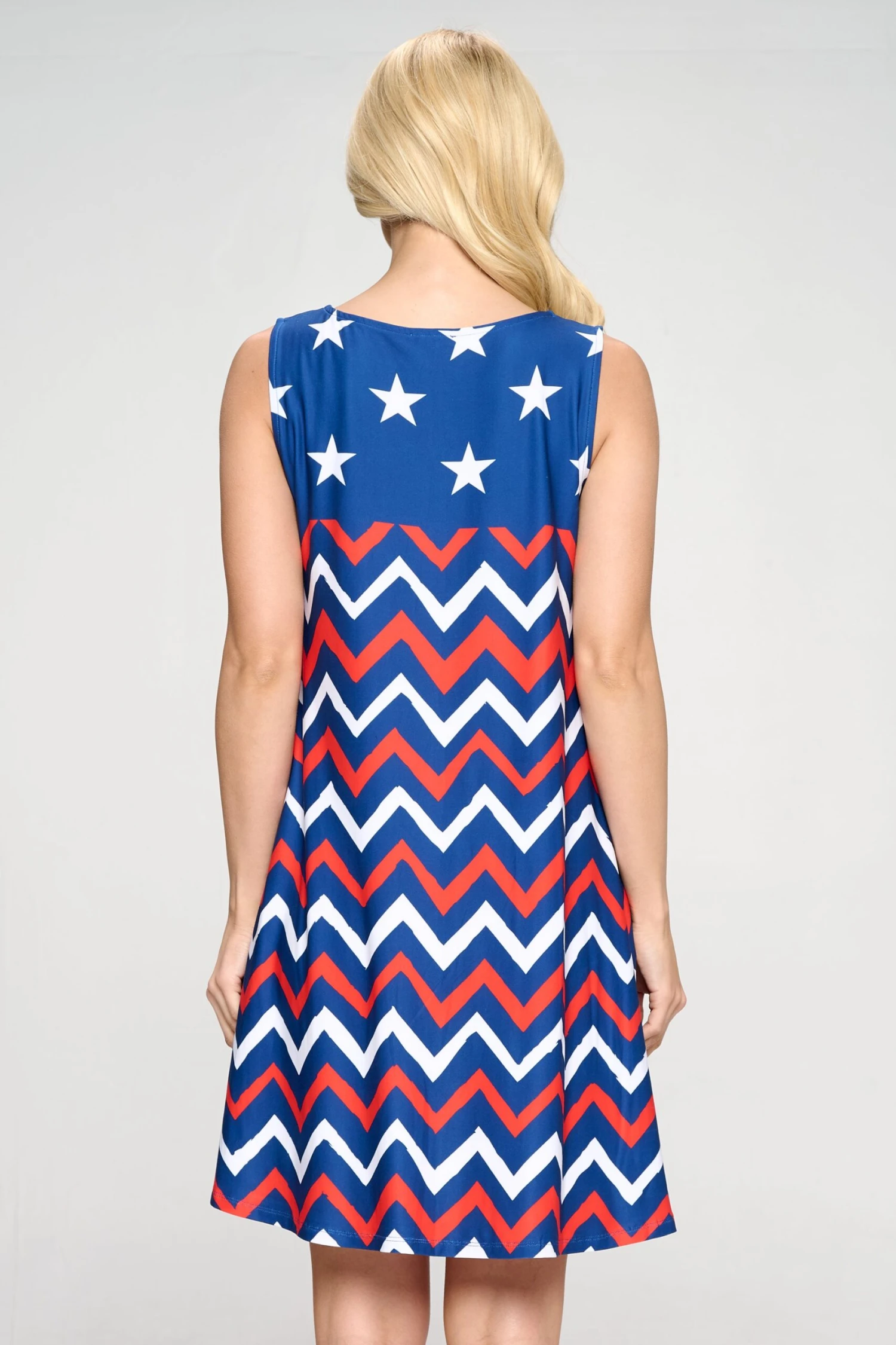 Light up the room with our USA stars and stripes tank dress at your next 4th of July party! This dress is the perfect outfit, it’s sleeveless and has two pockets on each hip!Â