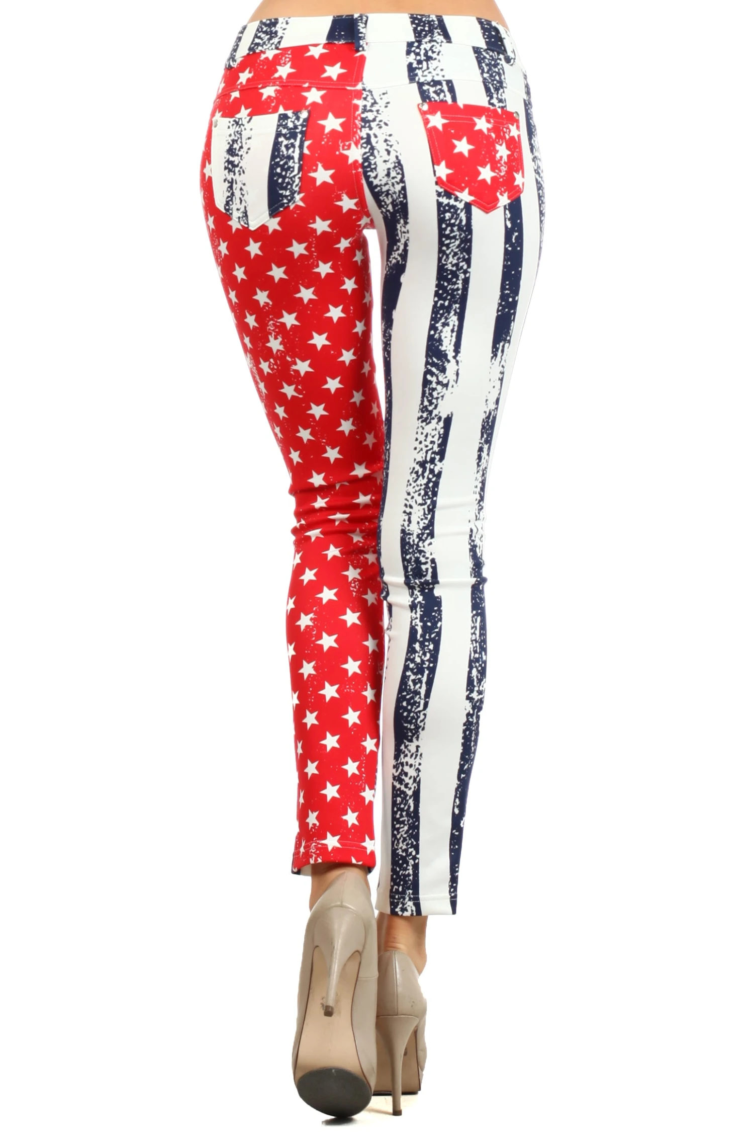 Add a little flare to your patriotic outfit with these red, white, and blue stars and stripes printed jeggings!