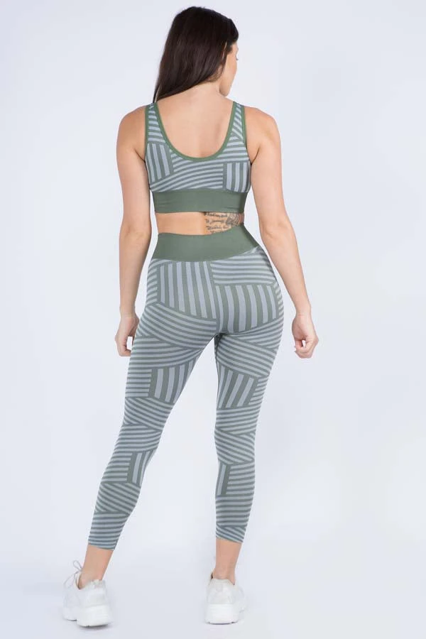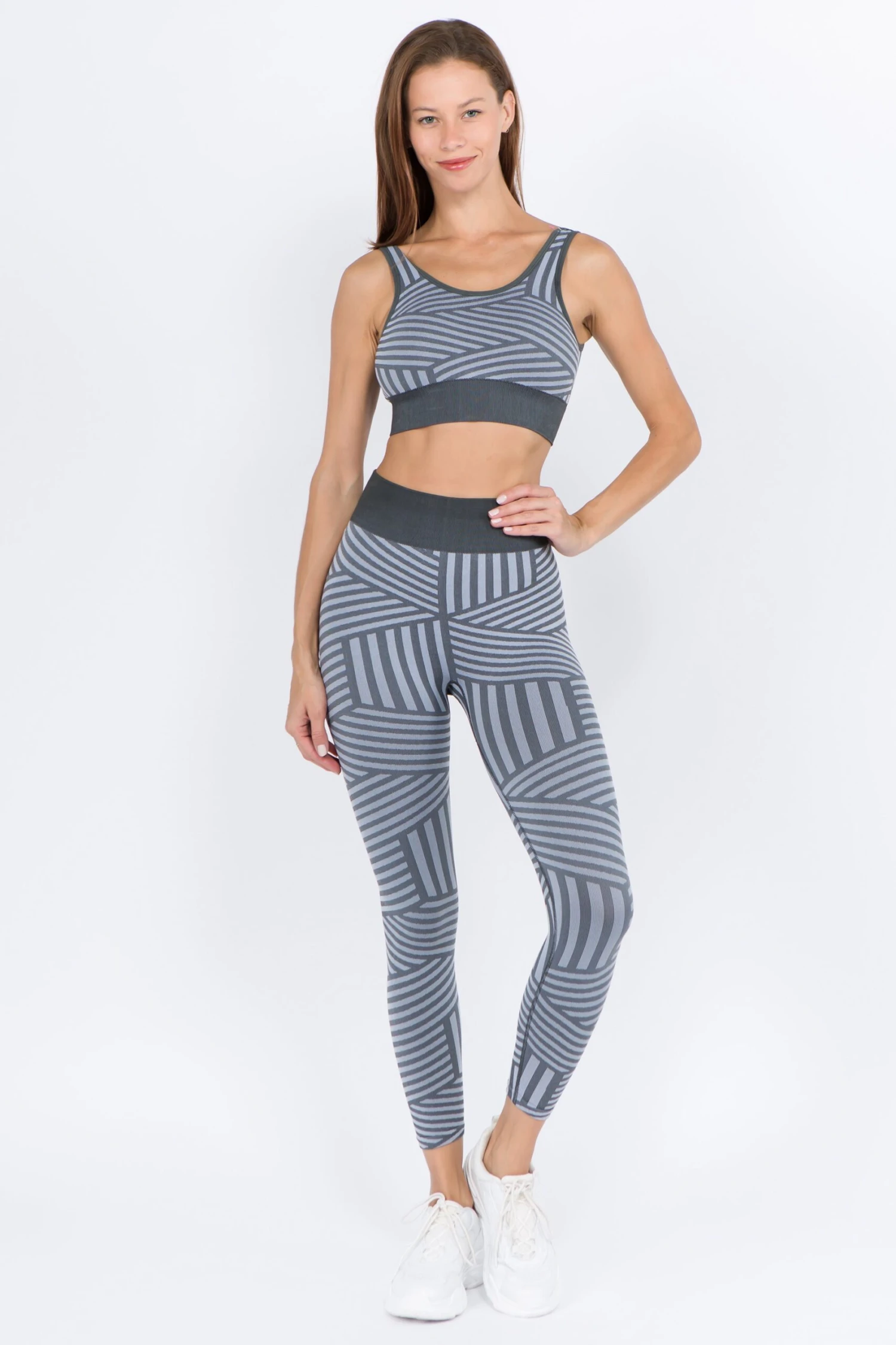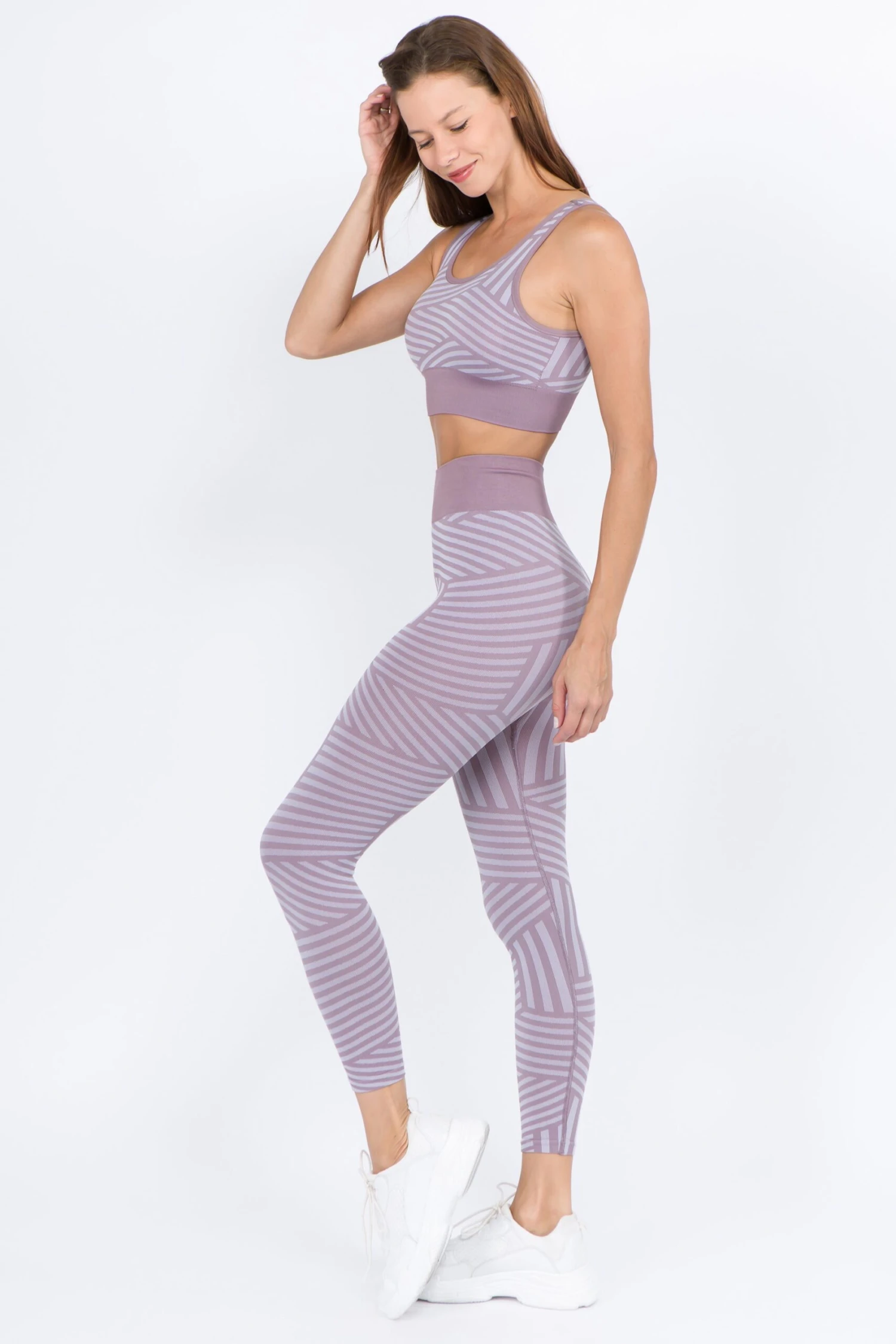 Stripes are forever a thing! Our Vital Multi Striped Workout Set includes a tank top sports bra and high-rise workout leggings. This seamless design is constructed with our 4-way stretch, moisture wicking fabric and has flat lock seams to prevent chafing. Perfect for all those workouts on your schedule!