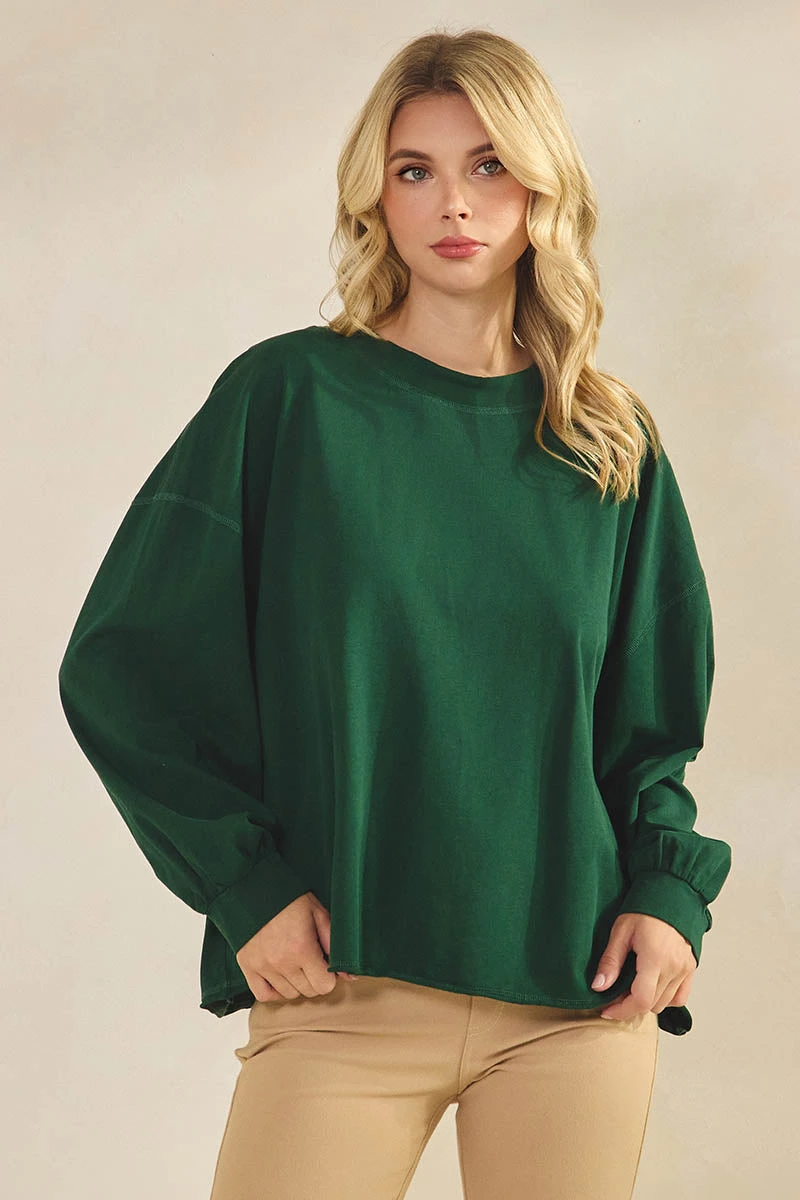 Stay comfy and effortlessly put-together in our Weekend Flow Lightweight Cotton Long Sleeve Top. With a soft crew neckline and relaxed A-line silhouette, it’s perfect for casual days, lounging, or weekend errands.