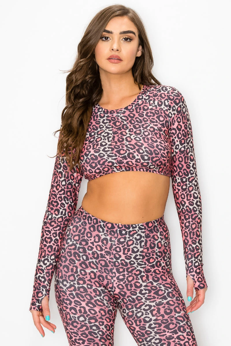 Show off your wild side in this four-way stretch buttery soft crop top easily layers on top of your sports bra for when you’re weightlifting to running errands.