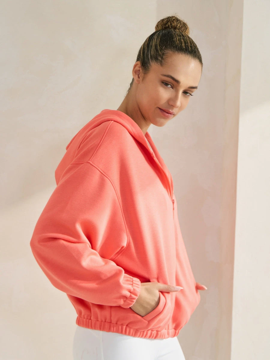 If you’re looking for a comfy fall jacket that’ll keep you warm and look good, then you’re in the right place. This zip-up jacket comes with a hood for those chilly autumn nights.