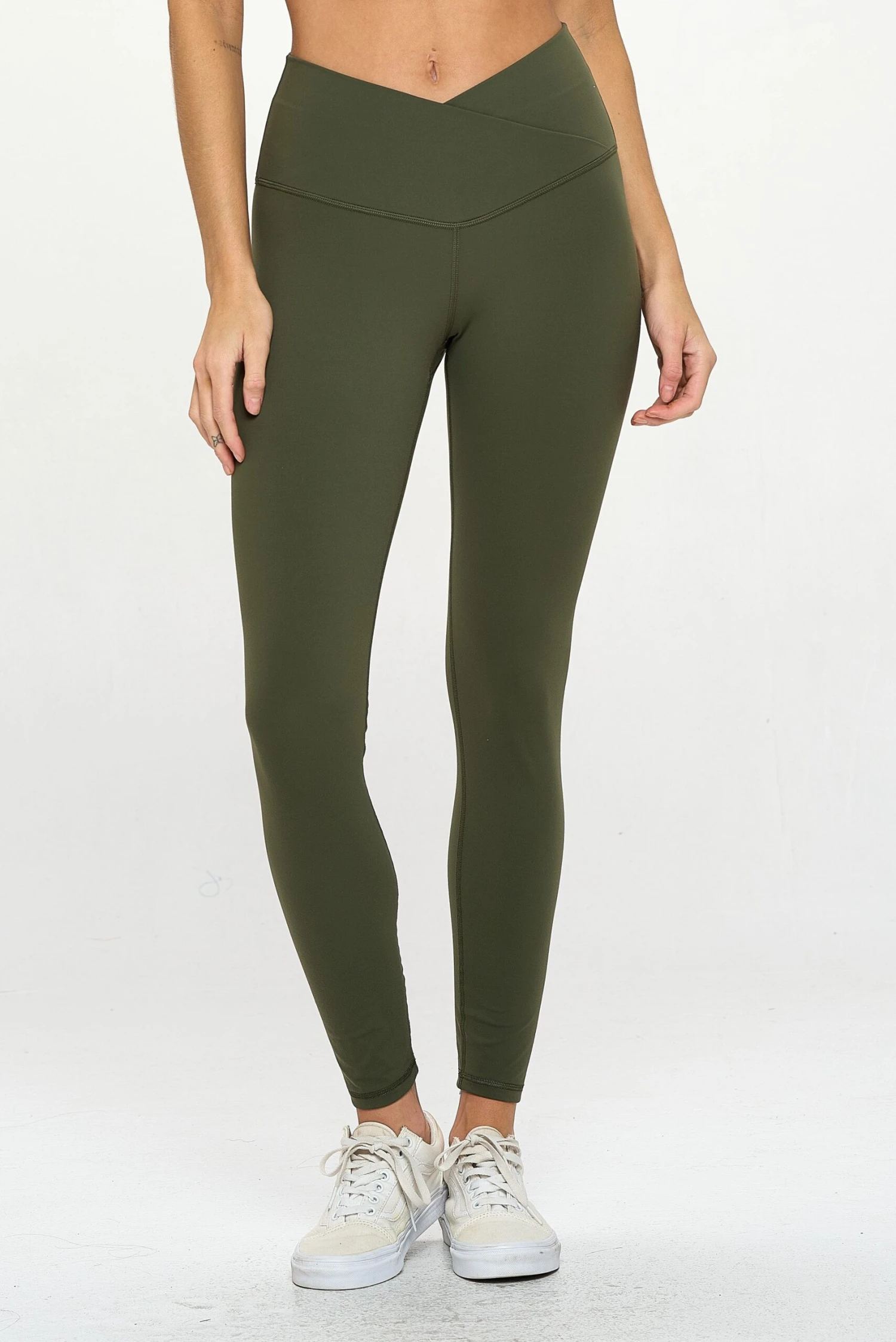 Here is a crossover leggings with eye-catching style and function! Highlight your waist with the flattering V-waistband and take on your day with confidence. A hidden phone pocket provides safe storage for all your needs!