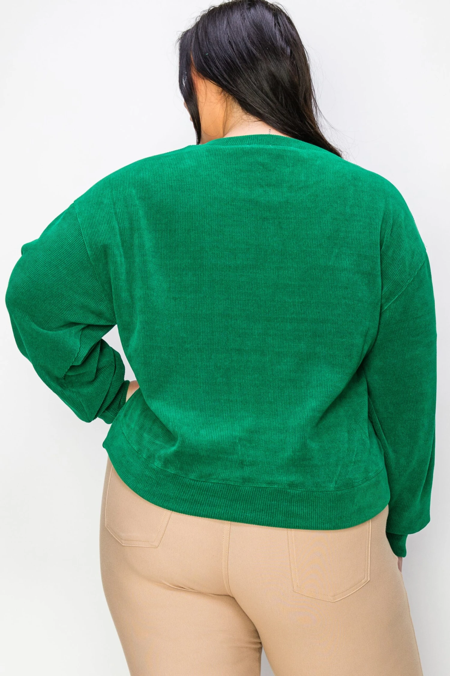 A relaxed-fit long sleeve top that can be styled with your favorite sweat pants for lounging or jeans to go out. Dropped shoulders, long sleeves and ribbing at the cuffs.Â