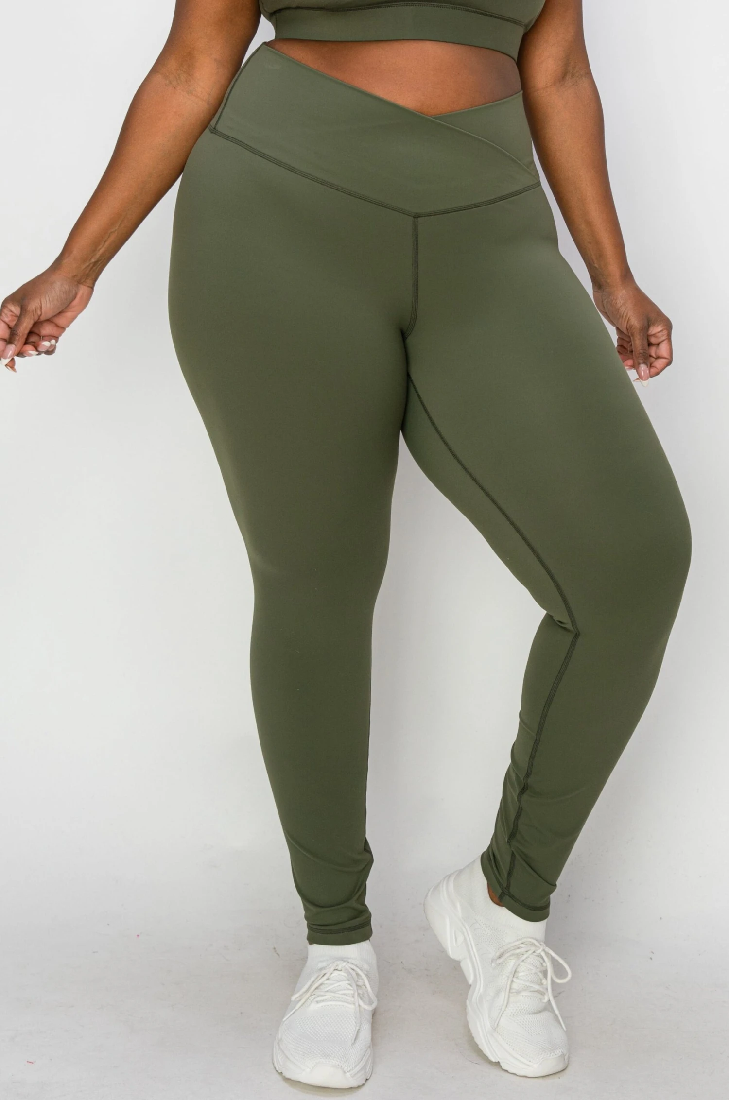 Here is a crossover leggings with eye-catching style and function! Highlight your waist with the flattering V-waistband and take on your day with confidence. A hidden phone pocket provides safe storage for all your needs!