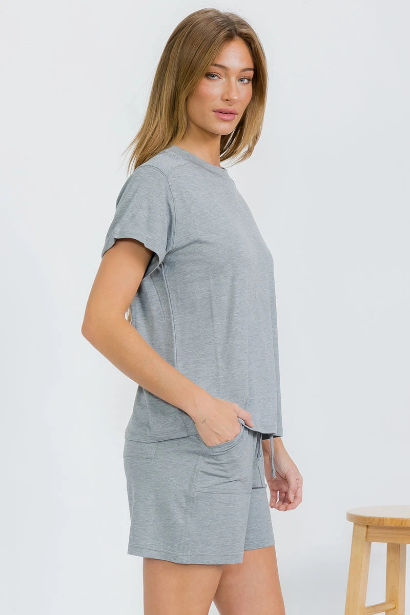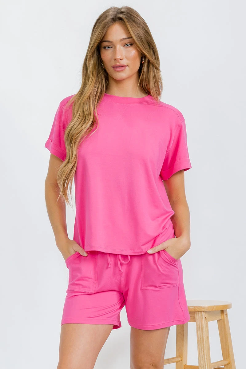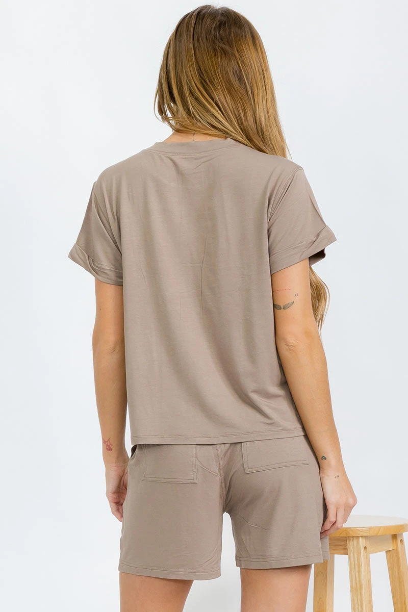 Unwind in comfort with this loungewear shirt and shorts set, designed for everyday ease and effortless style. Featuring a rolled sleeve tee and drawstring shorts made from soft, breathable fabric, it’s perfect for relaxing at home, running errands, or low-key weekend plans. Wear together or mix and match with your wardrobe favorites.