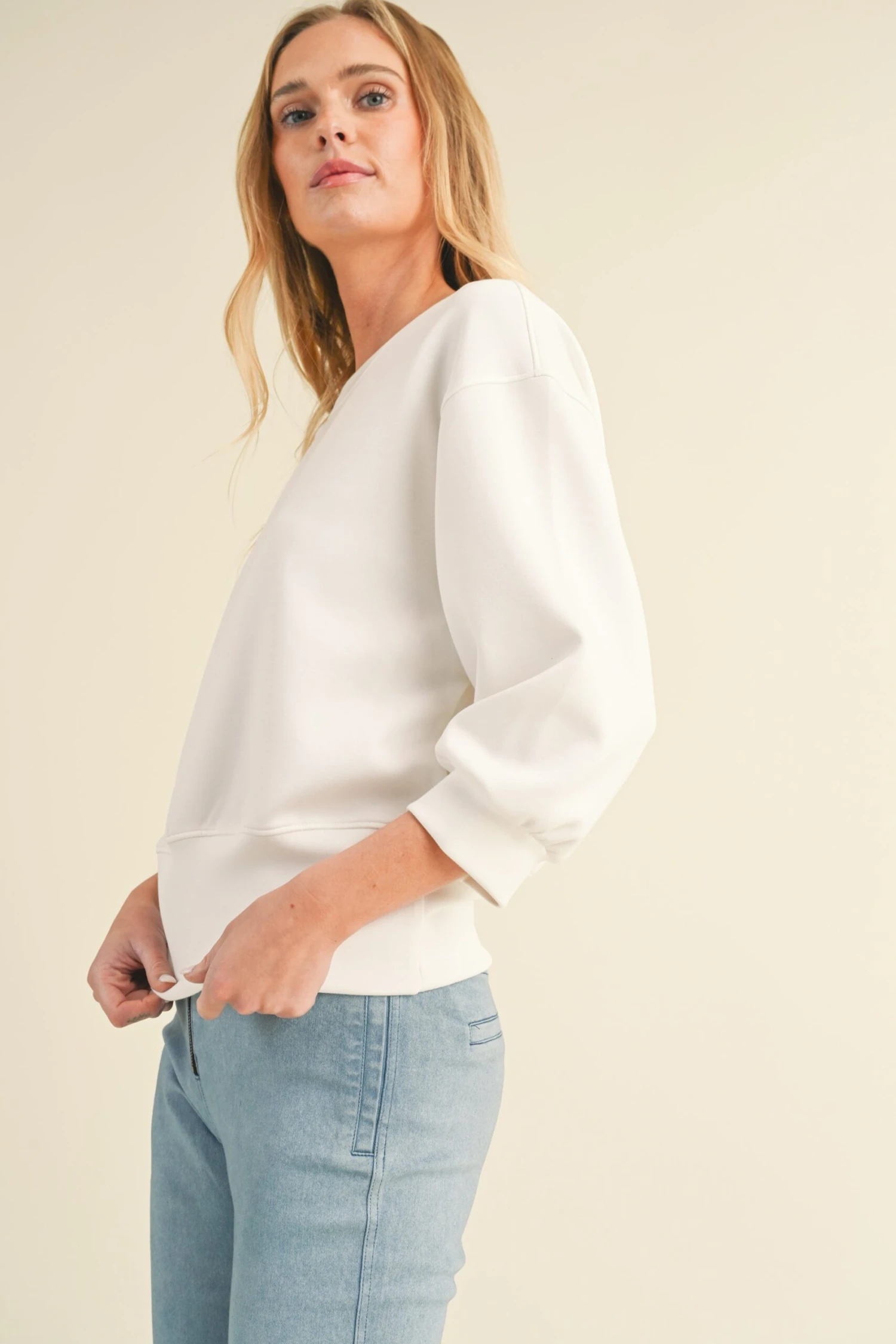 Slip into this comfortable and versatile sweater with sleeves not too long and a waist length that is just right. Made with the softest, lightweight scuba fabric you’ll ever lay hands on. Perfect for any occasion, whether it be running errands, lounging around, or a relaxing autumn night out. Dress it up or down, the world’s your oyster!
